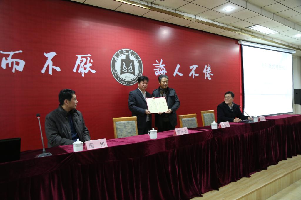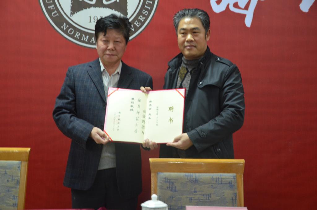 12月17日晚,北方文艺出版社编审、编辑室主任,一级作家梅庆吉先生兼职教授聘任仪式暨洙泗讲堂系列报告-“跟着孔子去旅行”在科技楼二楼南会议室举行。副校长扈庆学出席此次报告,并为梅庆吉颁发兼职教授聘书。报告由大乐透 院长成积春主持。
