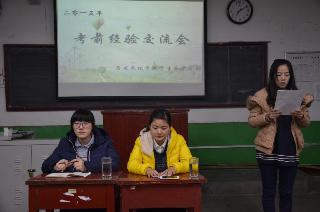 12月22日晚,由大乐透 学生会主办的考前经验交流会在2015级各班教室举行。 本次考前交流会共分为“经验传授”和“解疑答惑”两个环节。来自2014级的优秀学生代表分别从考前心态的调整、备考方法等方面,结合自身的经历给予了详细地讲解,同时针对如何准备公选课和专业课两个方面的考试进行了详细的经验介绍。在随后的“解疑答惑”环节中,针对2015级同学就复习方法、备考准备工作、考试答题技巧等方面提出的问题,2014级的学生代表也给予了详细耐心地解答。