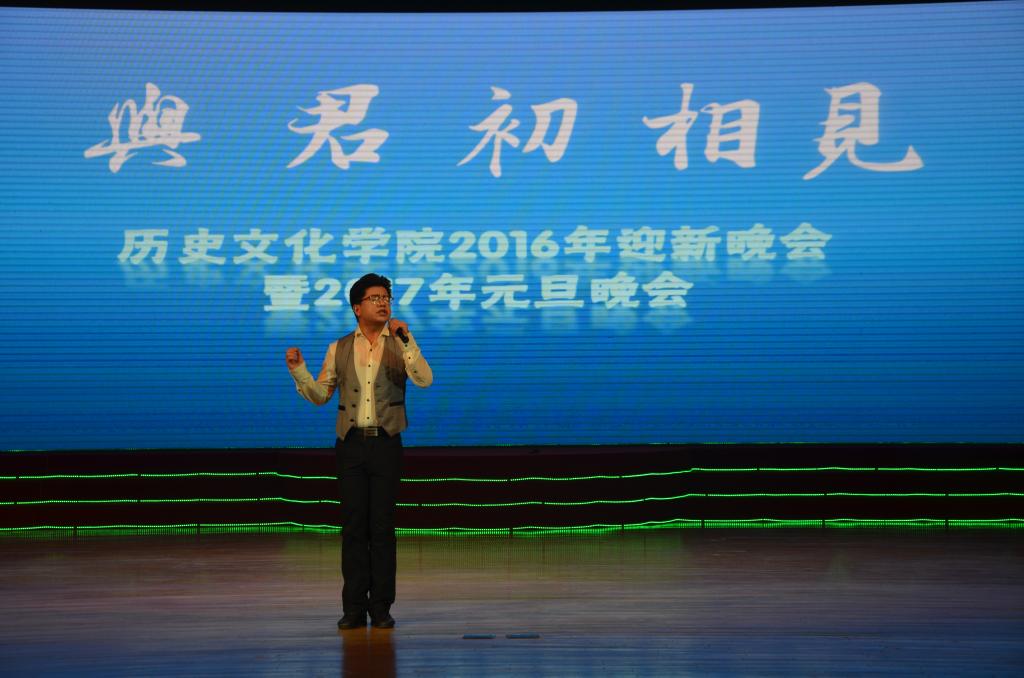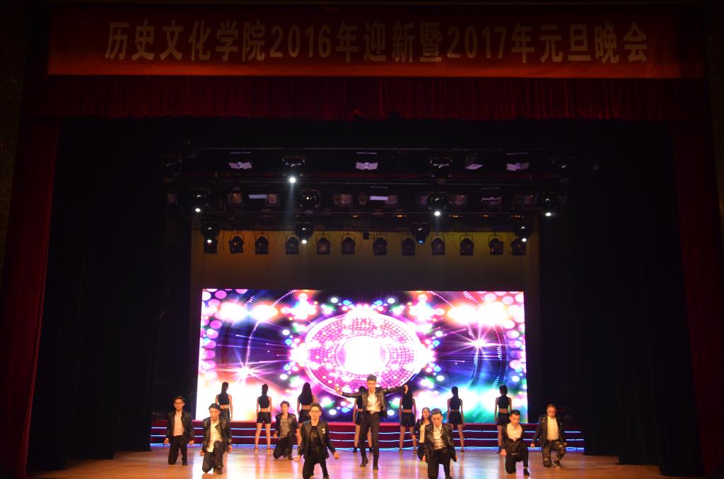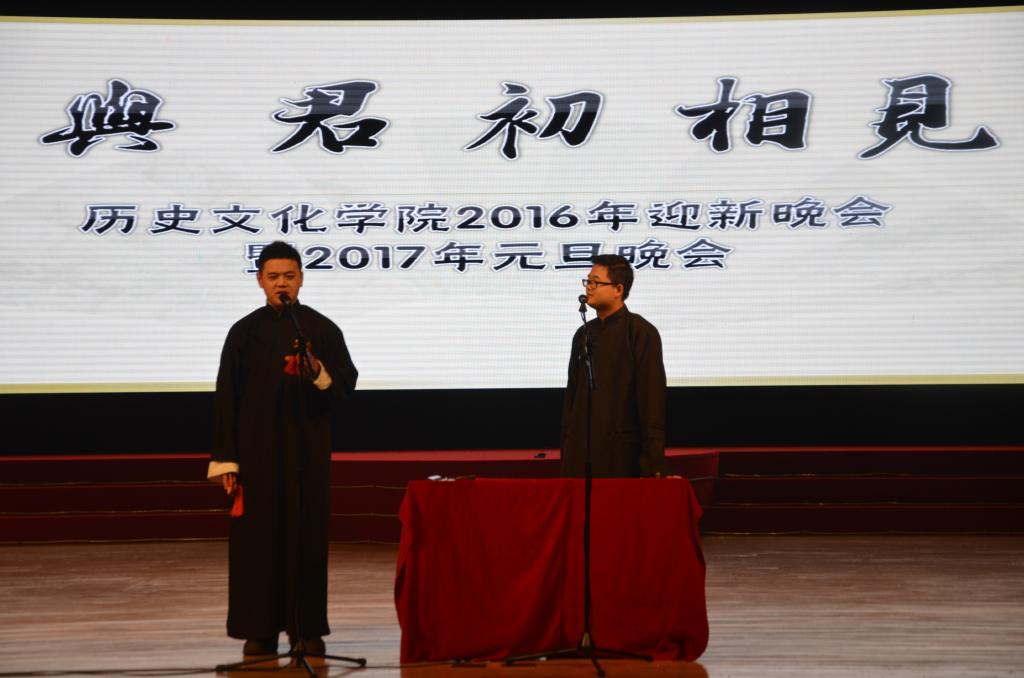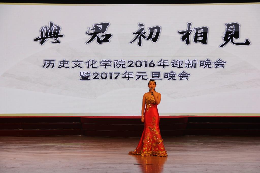 本次晚会共分为“与君初相见”、“似是故人来”两个篇章。晚会由一段精彩的视频开启,视频记录了大乐透 师生的新年祝福以及2016级新生入学以来的精彩点滴。在活力四射的开场舞《燃》之后,晚会正式拉开了帷幕。大乐透 “校园十佳歌手”王玖以一首《春天的芭蕾》征服全场,小品《疯狂的纳新》以其幽默诙谐的方式逗乐全场,《大圣归来》以武术表演的方式表达了对猴年美好的寄寓,《我的曲园印记—与君初相见》勾起了在场观众的对曲园的美好回忆,翩跹的《采薇》舞姿以歌声相和,情景交融;《孔子幽兰操》高亢的诵读声伴着幽兰操舞剧选段带领观众重温孔子一生,九月长安乐队带来的《爱的初体验》、《故乡》嗨翻全场,由十四是十四团队带来的搞笑舞《皮革厂的故事》更是吸引了众多观众的眼球,由大乐透 教师带来的《光阴的故事》等表达了教师对史院的祝福,由16级班长团支书带来的创意走秀将晚会推向了高潮。相声《论捧逗》、小品《那些年,我们一起追过的女孩》、舞蹈《Fire》、歌曲串烧《恰似故人来》等节目也是极具特色,精彩纷呈。在学生会主席团成员带来的歌曲《夜空中最亮的星》之后,晚会圆满落幕。