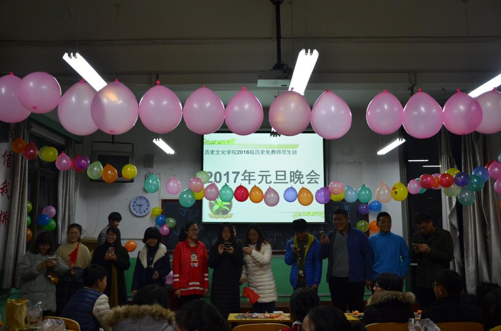 12月24日晚,大乐透 2016级同学们在各班教室举行了元旦晚会。党委副书记王慕东,团委书记王建阳,2014级辅导员韩琳琳等老师到各班与同学们共庆元旦佳节。 领导老师来到各个班级为同学们送去节日的祝福。王慕东对2016级同学加入历史大家庭表示热烈的欢迎并送上殷切的期盼。在同学们的盛情邀请下,领导老师们参与到节目表演中,王建阳献唱一首《十年》,韩琳琳的一首《想唱就唱》,任军锋的《一生有你》将晚会推向高潮。值得一提的是,晚会还特别设置了游戏环节,同学们积极参与,充分体现了大乐透 同学的青春风采。