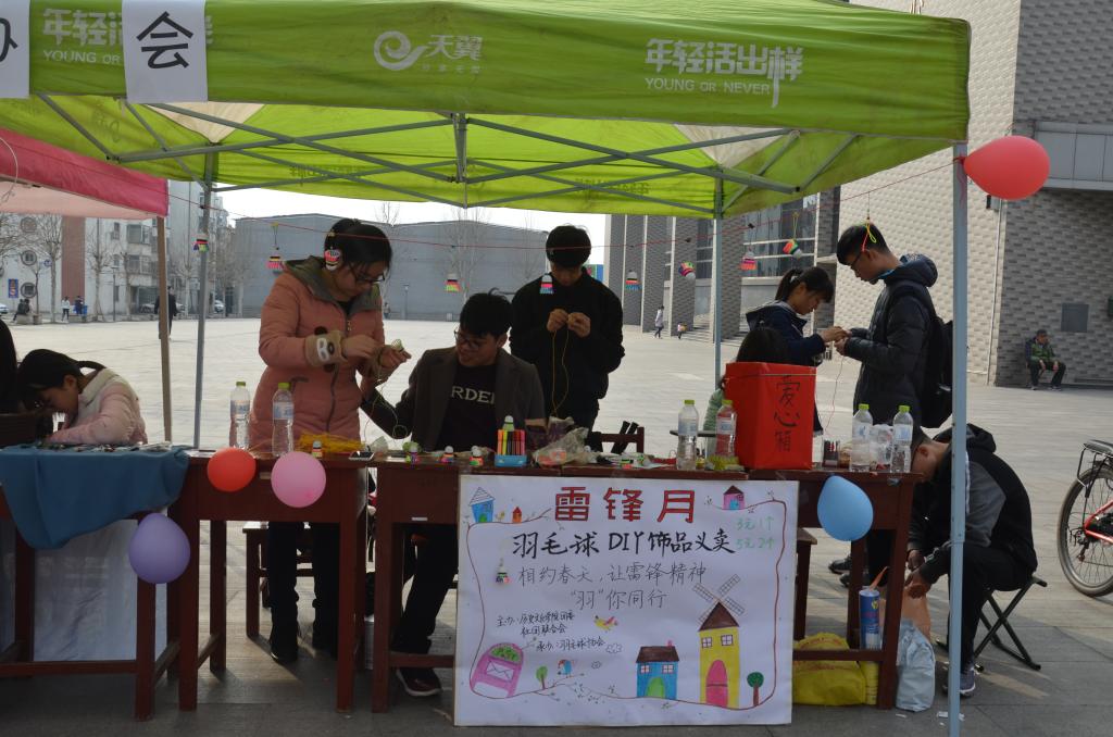 启动仪式结束后,大乐透 志愿者服务队在大活前进行“国学小课堂”成果展,志愿者身着儒服,为前来参观的师生介绍大乐透 “国学小课堂”近年来获得的成果。此次活动拉开了大乐透 学雷锋系列活动的帷幕。4日、5日,羽毛球协会的成员在大活前进行了为期两天的羽毛球DIY饰品义卖活动。