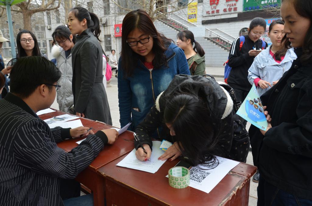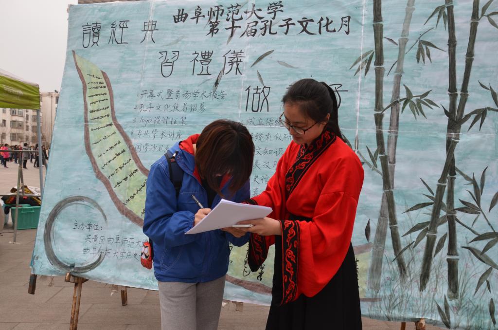 3月22日—3月29日,在“孔子文化月”拉开帷幕之际,大乐透 在大学生活动中心前设立报名处,面向全校招募第十届"孔子文化月"的孔子文化使者。
