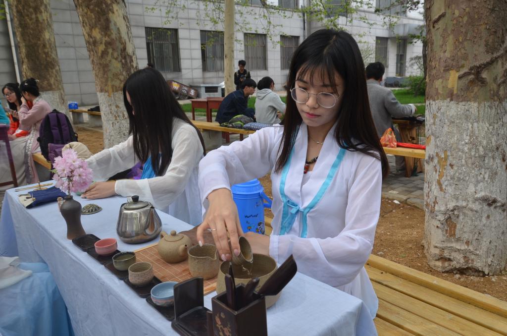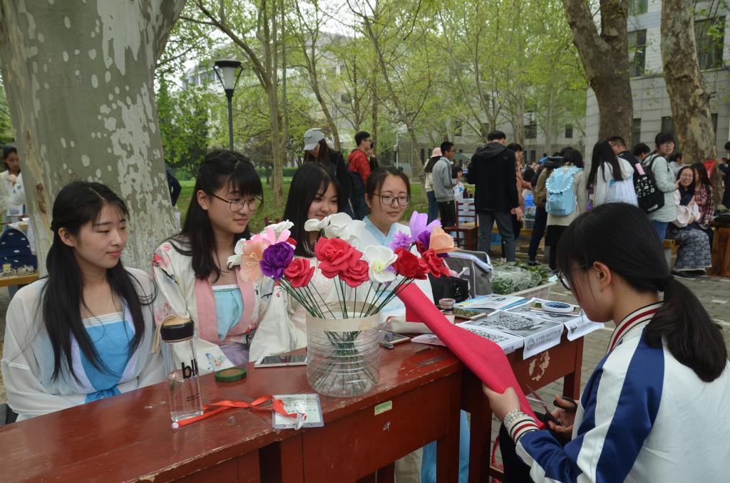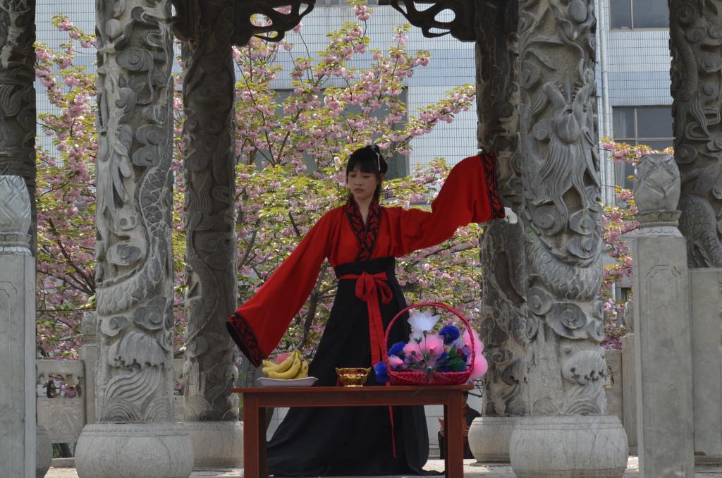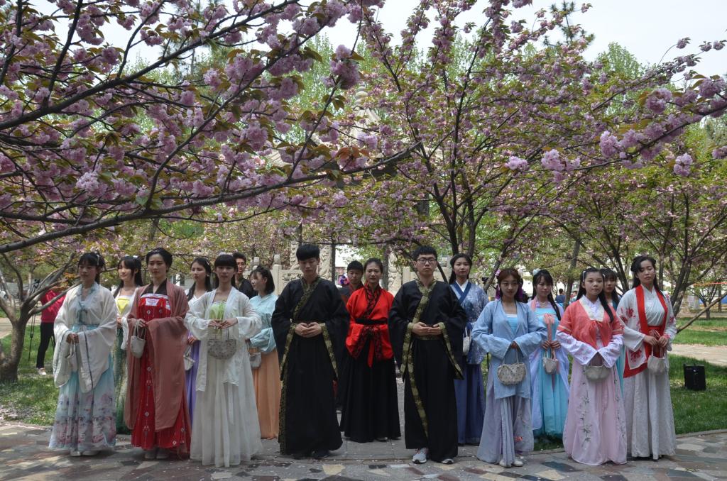 4月15日,大乐透 洙泗学社主办的花朝节系列活动在大乐透 综合楼北树林举行。