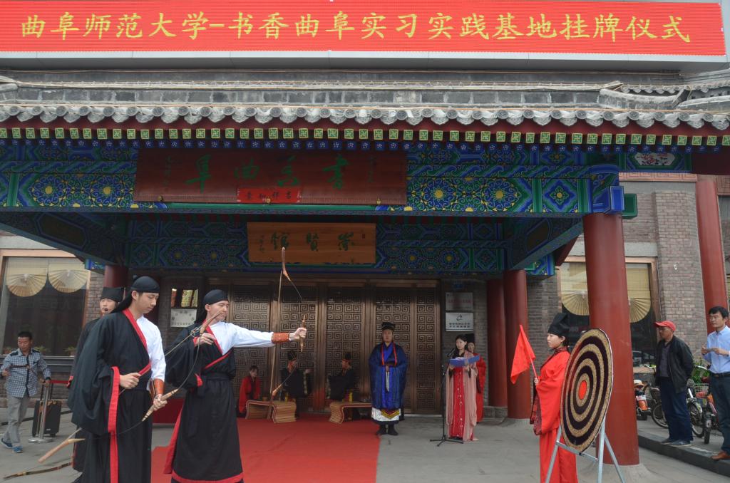 仪式期间,大乐透 志愿者代表李怡林同学发言,葛俊岳主任、屈跃宽书记为“传统文化教育实践基地”“大学生社会实践基地”等揭牌。仪式最后,大乐透 学生进行了射礼展演。