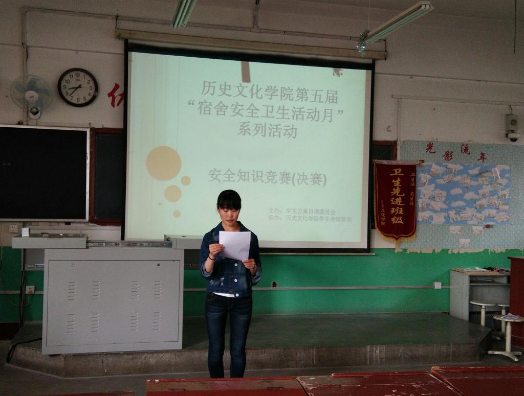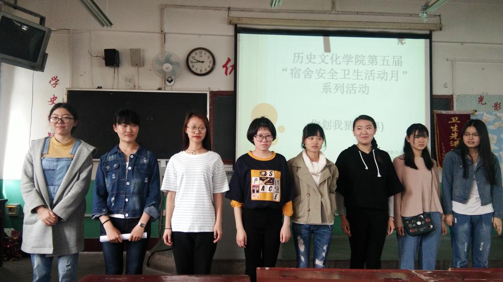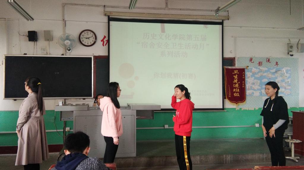 本次宿舍安全卫生活动月主题为“安全记心中,平安伴我行”。比赛分初赛和决赛,以宿舍为单位参赛。初赛进行“你划我猜”比赛,以增强同学们对违章电器及其使用危害的认识;决赛进行安全知识竞赛,以加强宿舍成员的安全意识。在本次比赛中,西一东527宿舍获得一等奖。