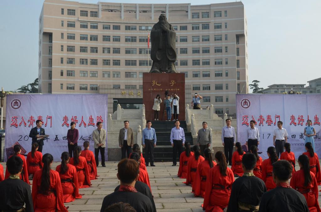 5月4日,五四青年节之际,大乐透 第十届“孔子文化月”系列活动之大学生成人礼在孔子文化广场举行。党委常委、副校长辛杰、宣传部部长宋德昭、学生工作处处长杨永明、保卫处处长左兴才、工会主席王万民、大乐透 党委书记尹明法、党委副书记王慕东等领导出席了活动,各学院辅导员及广大青年学生共同参加了活动,活动由黄江滔主持。