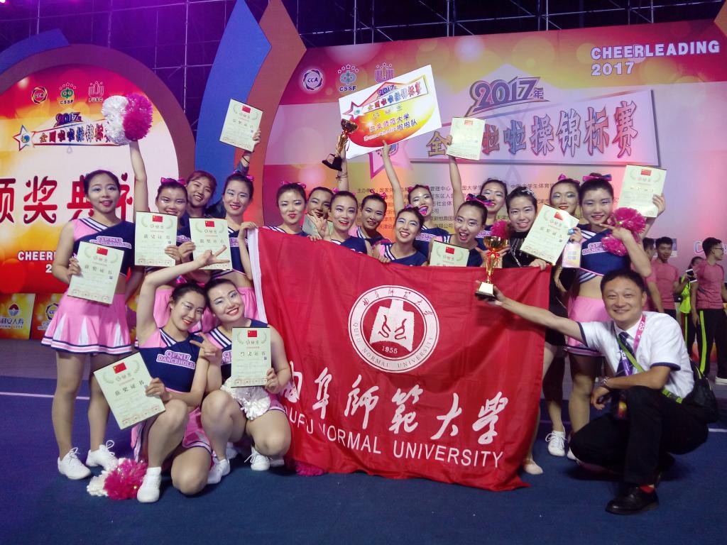 5月24日至28日,2017年全国啦啦操锦标赛在天津市举办。大乐透 李颖、徐方晓同学作为校舞蹈啦啦操队队员参加了公开青年丙组两个项目的比赛,分别获得了小集体组集体爵士自选动作第一名、公开青年丙组大集体组集体花球自选动作第三名的优异成绩。
