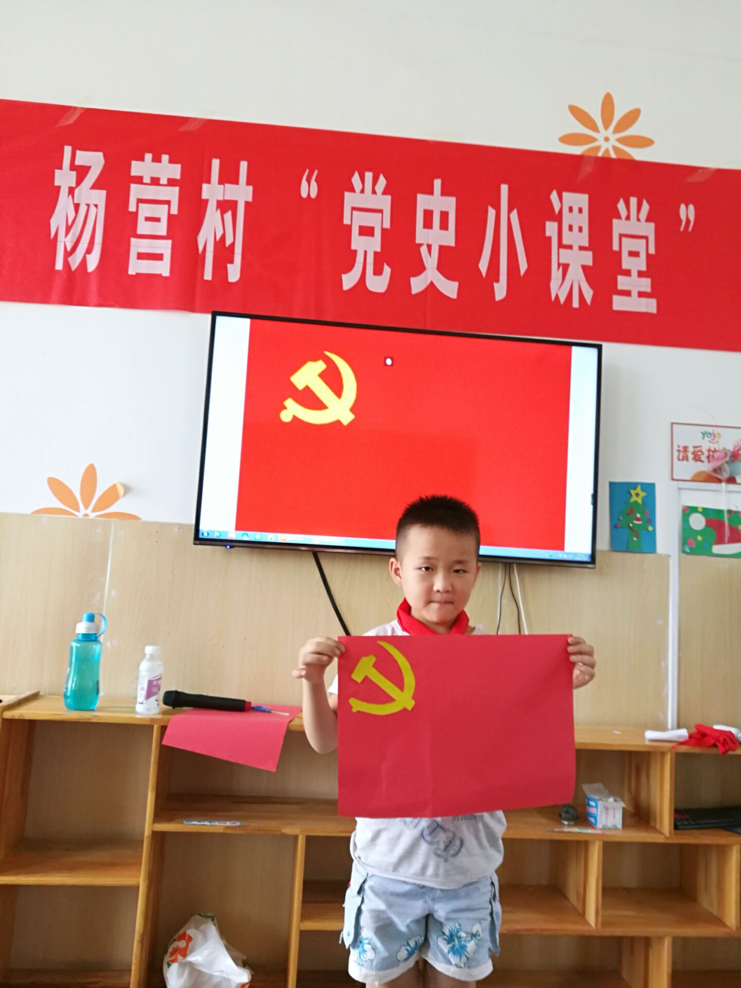 “党史小课堂”的第一堂手工制作课从认识党旗制作党旗开始,志愿者给孩子们详细讲解党旗的构成及内涵,手把手地教孩子们制作党旗。通过边听边做的方式,极大地激发了孩子们对学习党史的热情和积极性。