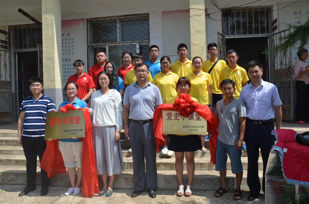 7月11日,大乐透 “党史小课堂”和“国学小课堂”揭牌仪式在临沂市沂南县马牧池乡东南官庄村举行。大乐透 团委书记王建阳、辅导员韩琳琳以及沂南县团委刘祥涛、马牧池乡团委书记高严等相关领导出席了此次活动。