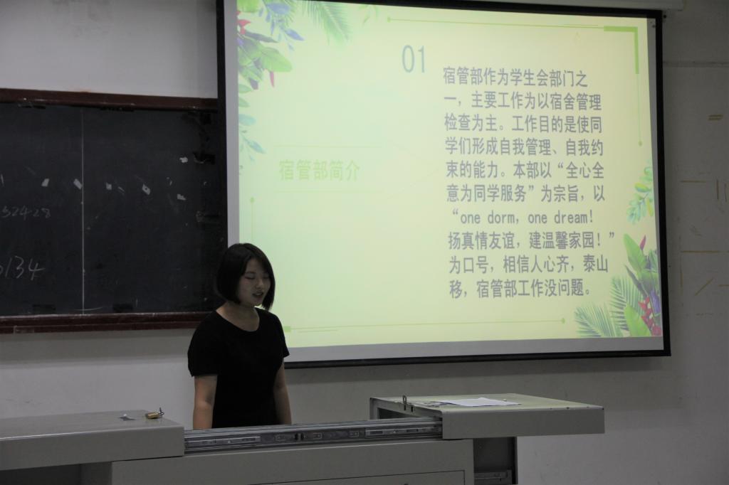 组织部、权益部、宿管部分别就团关系组织关系转移、安全问题和宿舍检查标准等问题为新生进行了讲解,向同学们详细介绍了大学安全、日常生活以及宿舍问题等知识。最后,各部门对同学们提出的疑问做了细心的解答。