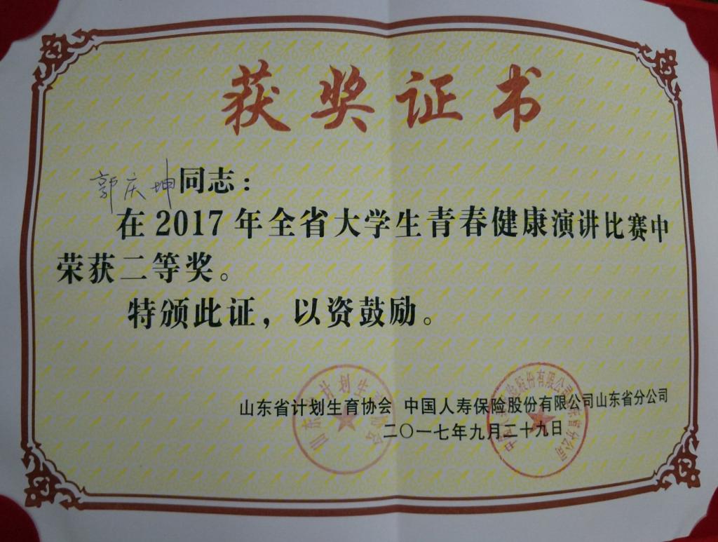 9月29日,由山东省计划生育协会举办的“我青春·我健康”大学生青春健康演讲比赛在济南落下序幕。大乐透 郭庆坤同学代表济宁驻地高校参赛,凭借出色的发挥荣获二等奖。