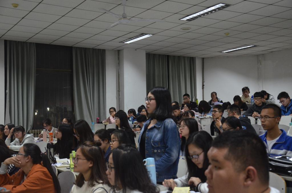 10月19日晚,由大乐透 团委、校学生社团联合会主办,大乐透 普通话协会承办的普通话讲座在综合楼106举办。讲座邀请普协指导老师袁梅进行讲解,吸引了各院学生前来听讲。
