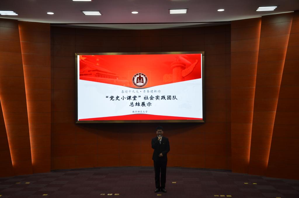 在报告中,大乐透 团队通过8分钟演讲,结合图片、视频展示等方式将报告分筹备过程、实践过程、实践成果三个部分向在座领导和观众展示了大乐透 “党史小课堂”社会实践活动。