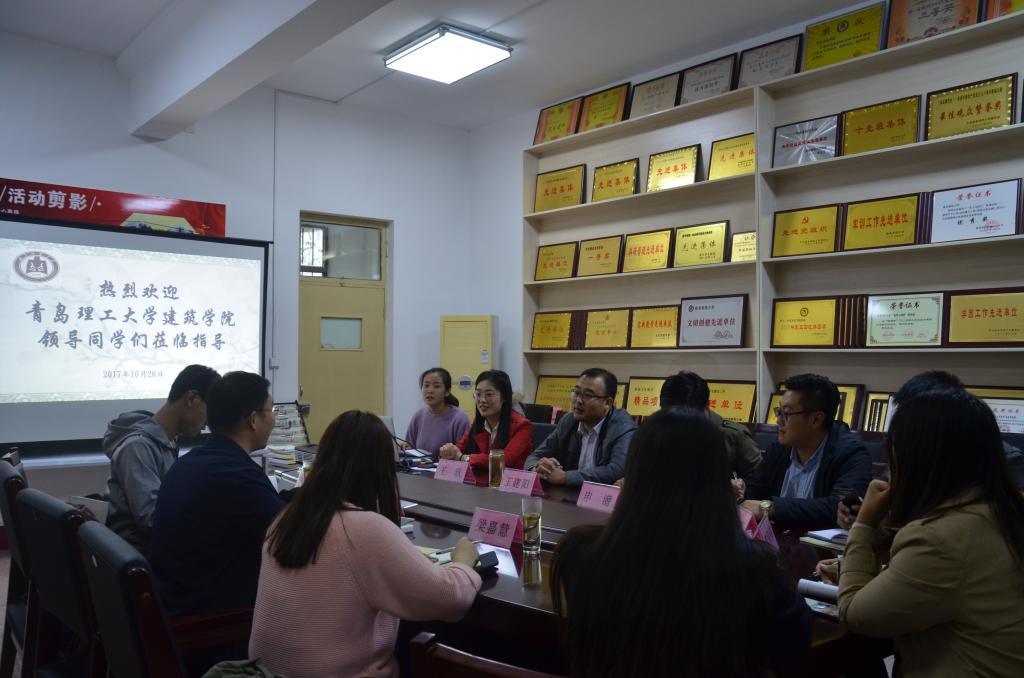 10月26日下午,青岛理工大学建筑学院团总支书记高江、团总支副书记姜松以及学生会主席梁嘉慧来大乐透 进行工作交流。大乐透 团委书记王建阳、团委副书记王玖、学生会主席付盛阳等主席团成员出席交流会。