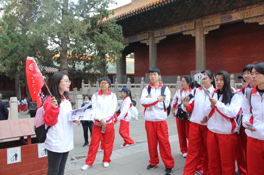 11月5日上午,大乐透 组织2017级新生游览了“三孔”景区。团委书记王建阳在活动前给同学们做了动员并讲解了安全注意事项,各班辅导员助理与2017级新生一起游览。