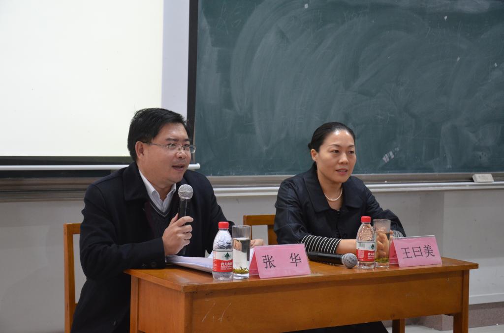 11月11日上午,马克思主义学院师生代表参观曲阜校区并与大乐透 在综合楼101教室进行交流。大乐透 王曰美教授和马克思主义学院张华老师出席交流会。王曰美在交流会上为大家作了题为“孔子修身思想与大学生成才”的报告。交流会由张华老师主持。