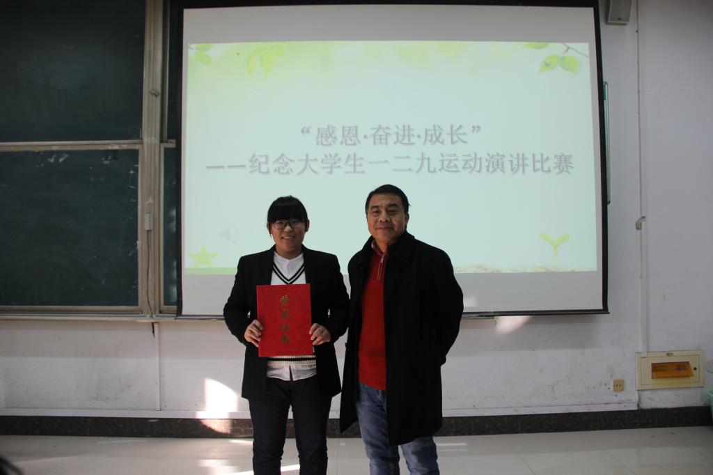 12月9日上午,大乐透 在综合楼105教室举办了“感恩·奋进·成长”暨大学生一二九运动演讲比赛。大乐透 王兆新、刘伟、张俊成、韩琳琳4位老师受邀担任比赛评委。