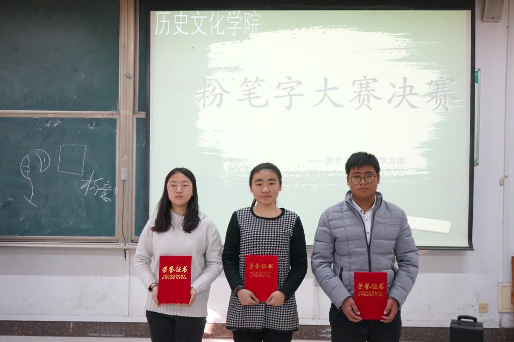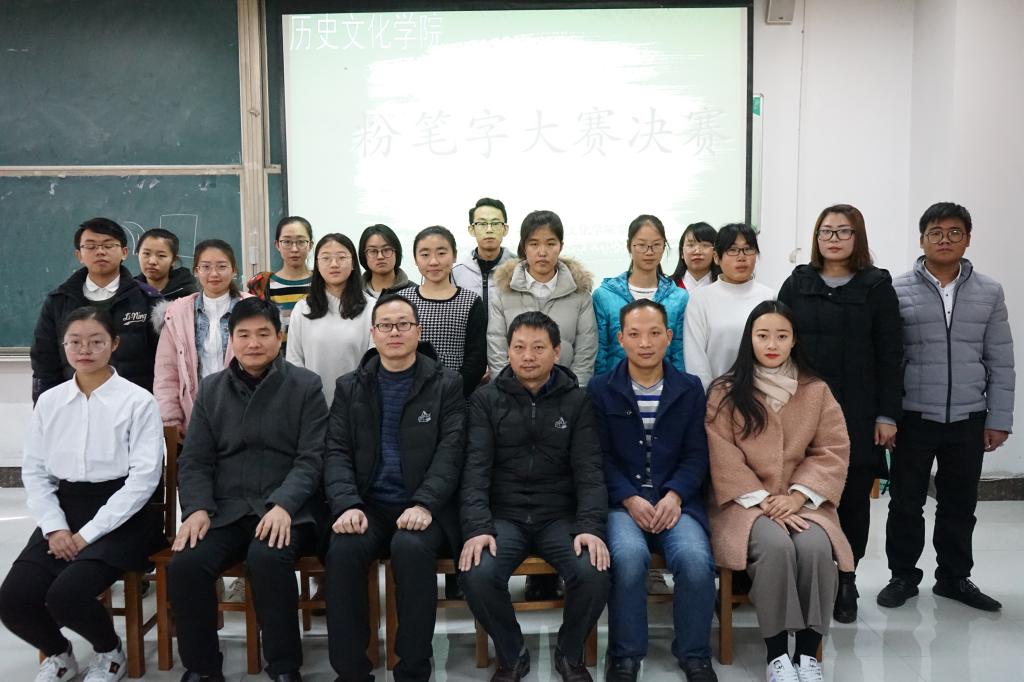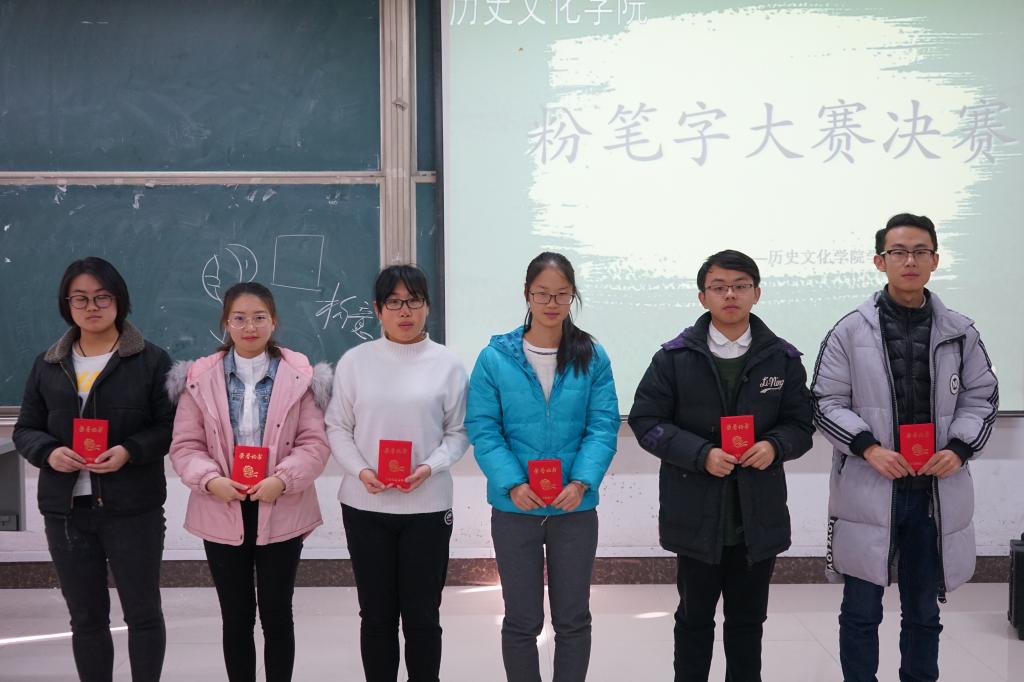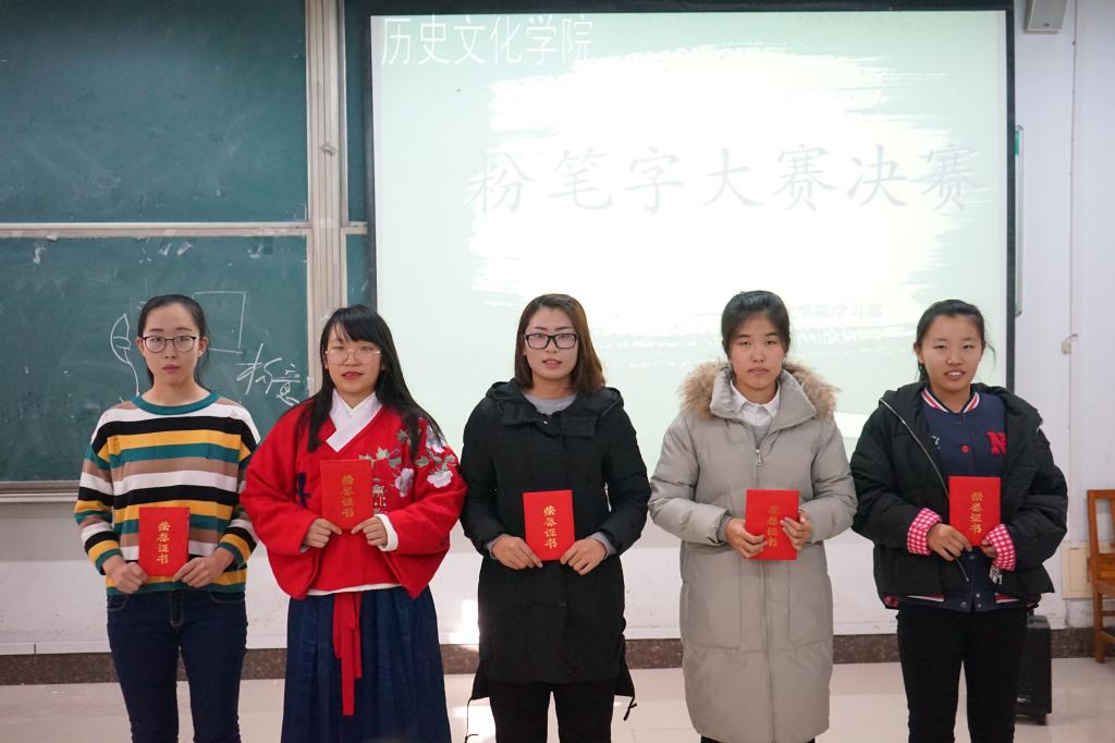 12月17日上午,由大乐透 团委主办的“2017年粉笔字大赛”在综合楼105落下帷幕。韩锋、刘伟、张俊成、徐团辉四位老师出席了此次比赛并担任评委。