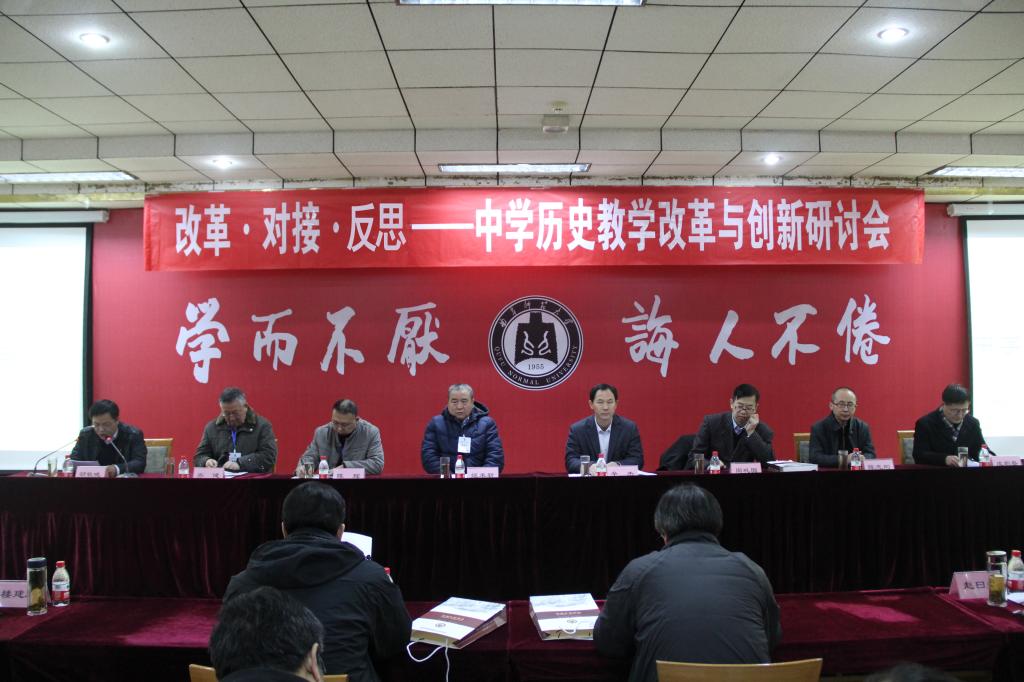 在主题发言和专题研讨环节,与会专家围绕“基于新课程标准的中学历史教学改革”、“高校历史学师范专业人才培养与中学历史师资需求有效对接”、“新世纪以来中学历史课程改革回顾与反思”等问题进行了深入探讨。