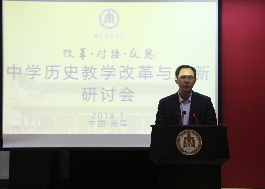 辛杰副校长代表学校对各位专家学者的到来表示热烈欢迎,对全国历史教师教育专业委员会对本次会议的支持表达诚挚的谢意,强调中学历史教学改革和发展日益成为推动新时期教育改革、培育民族精神、坚定文化自信的重要环节。全国历史教师教育专业委员会理事长姬秉新教授在致辞中表示,在国家即将推行新教材、新课标的背景下,会议主要讨论历史教育的热点问题,对推动历史新课程、新教材的使用和历史教学的方式、方法等问题具有很重要的意义。滕州市第三中学赵曰法书记代表我校历史学专业教学实习基地致辞,并认为研讨会的召开会大大提高高校师范专业人才培养的时效性和针对性。