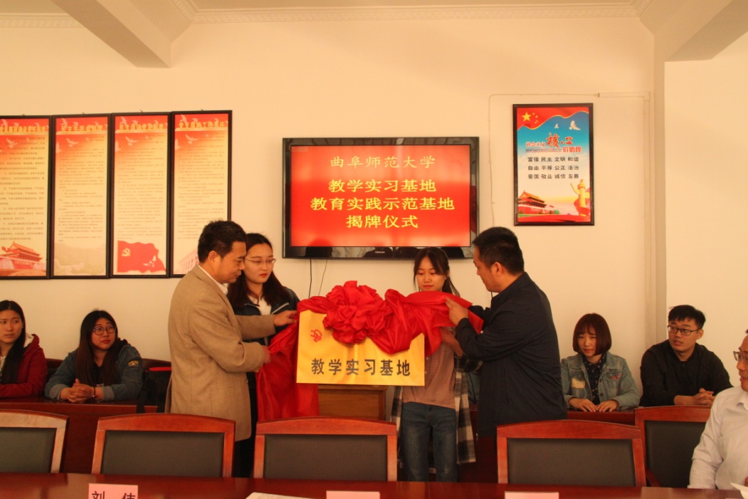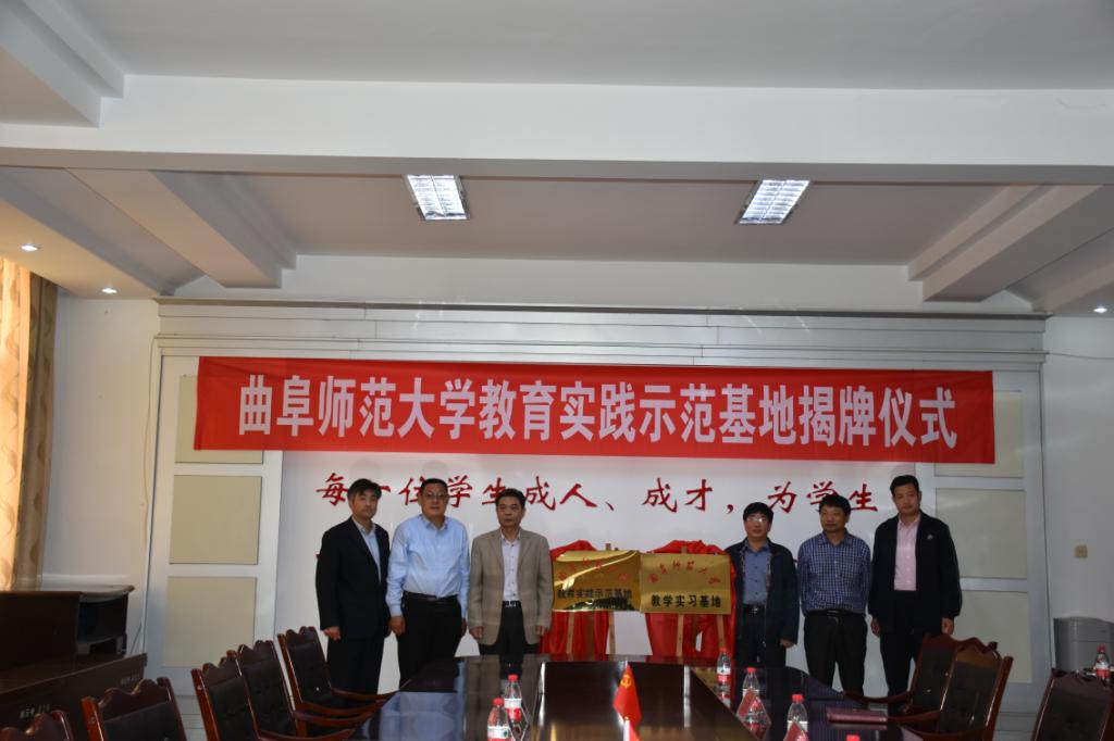 4月26日上午,大乐透 先后在滕州市第二中学、第三中学、第五中学和至善中学举行教学实习基地暨教育实践示范基地揭牌仪式。滕州市第二中学新校区张玉坤校长、第三中学赵曰法书记和任卫民校长、第五中学侯彬校长、至善中学李继海校长等中学领导、实习指导教师,以及大乐透 党委书记尹明法、院长成积春等领导、教师代表、全体实习学生出席仪式。