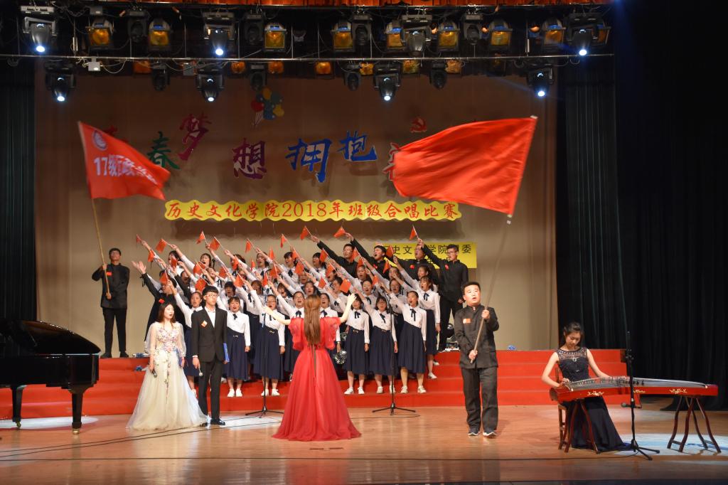 比赛采用2016级、2017级分组比赛的形式。比赛中,2017级7个参赛班级除演唱规定歌曲《光荣啊,中国共青团》外,还选取了《国目。2016级参赛班级各自选取了《红星闪闪》《奔跑》《骄傲的少年》等歌曲作为参赛曲目。各班将舞蹈、书法、朗诵等表现形式与合唱相结合,创新了合唱形式,赢得现场观众的阵阵掌声。最终,2017级历史学一班、2016级历史学二班获得本次比赛的一等奖。