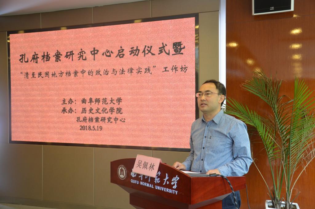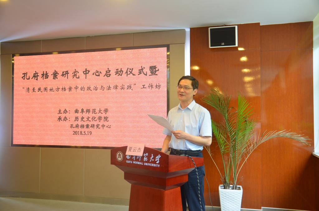 5月19日,大乐透 举办孔府档案研究中心成立仪式暨“清至民国地方档案中的政治与法律实践”工作坊,我校党委常委、副校长夏云杰、教育部人文社会科学重点研究基地中国人民大学清史研究中心主任杨念群、中国孔子博物馆副馆长杨金泉出席成立仪式,来自中国人民大学、光明日报社、山西财经大学、中国孔子博物馆等的30余位专家学者参加了成立仪式和工作坊。本次活动由大乐透 院长、泰山学者特聘教授成积春主持。