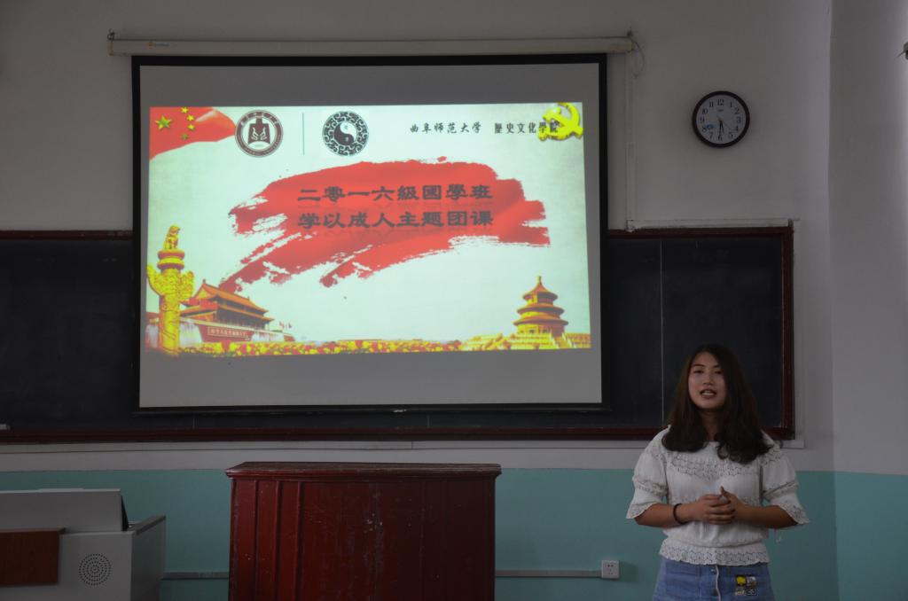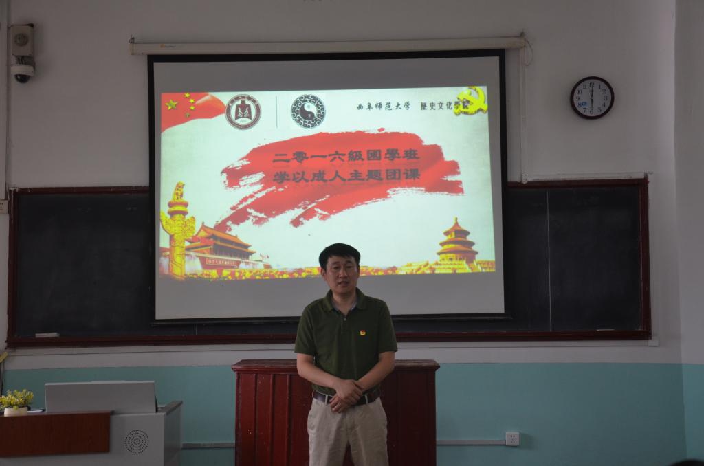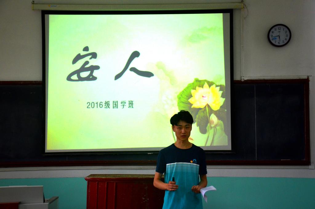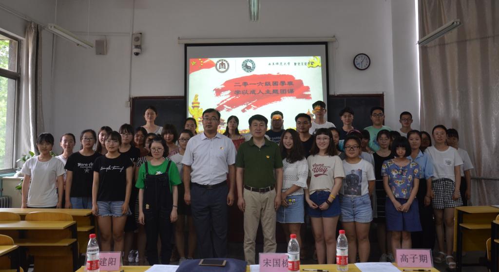 为了积极响应团中央的号召,全面开展“青年大学习”行动,6月21日下午,大乐透 2016级国学班举办“学以成人”主题团会活动。校团委书记宋国栋,大乐透 团委书记王建阳,2014级国学班团支书高子期出席活动。活动由2016级国学班团支书潘忆萱主持。