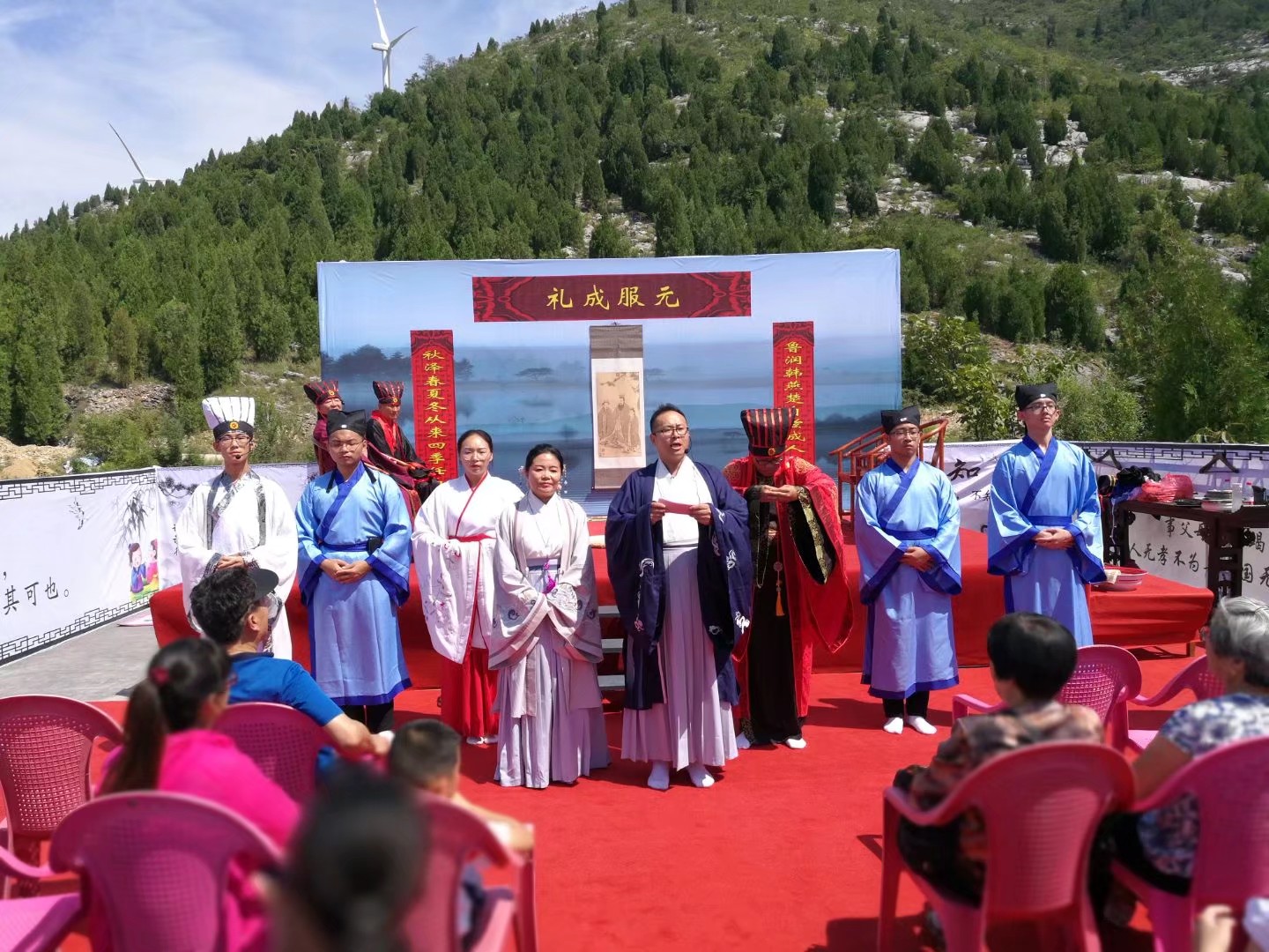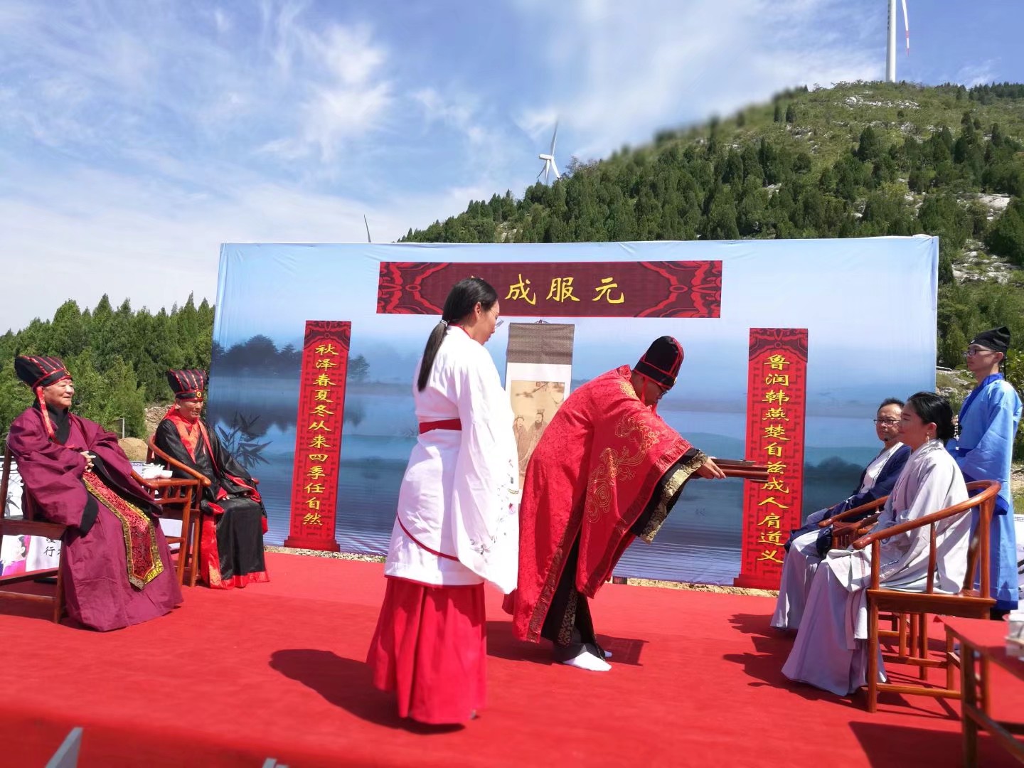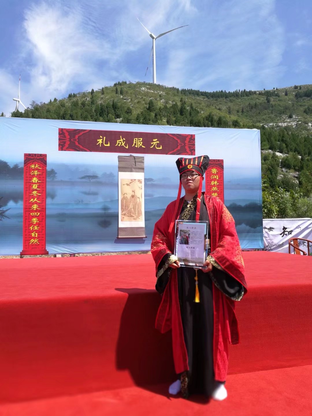 8月26日,由大乐透 大学生传统礼仪研修中心指导的韩燕楚同学的“成人礼”仪式在泗水二龙山成功举行。韩燕楚父母亲朋长辈到场观礼。