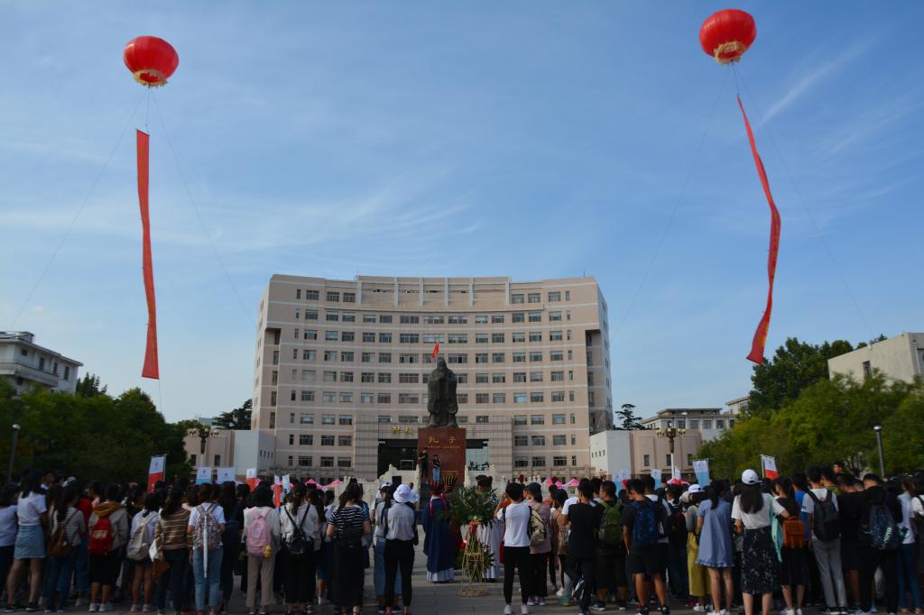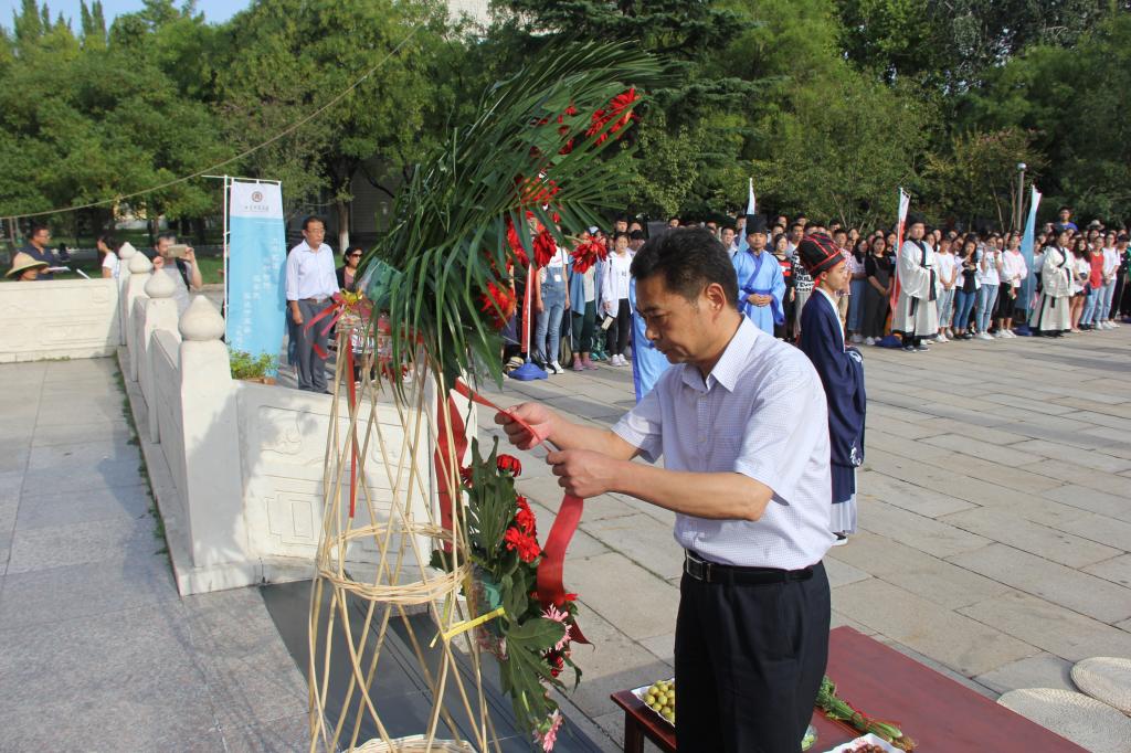 9月9日下午,大乐透 教师节系列活动之“释菜礼”展演于孔子文化广场举行。大乐透 党委书记尹明法、院长成积春出席活动,2018级全体新生现场观礼。