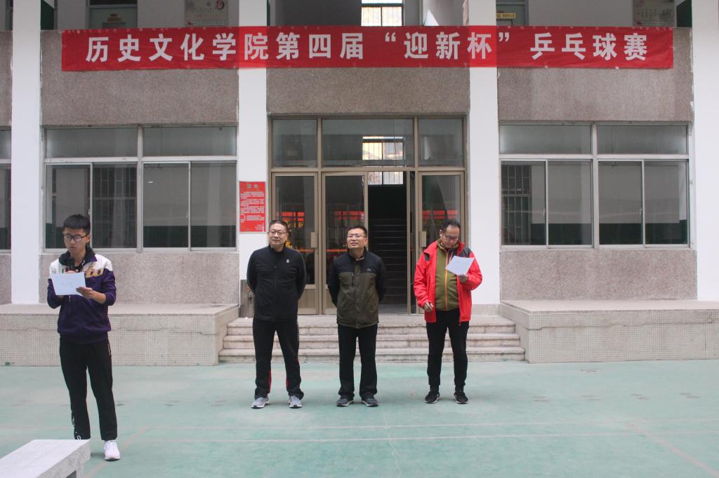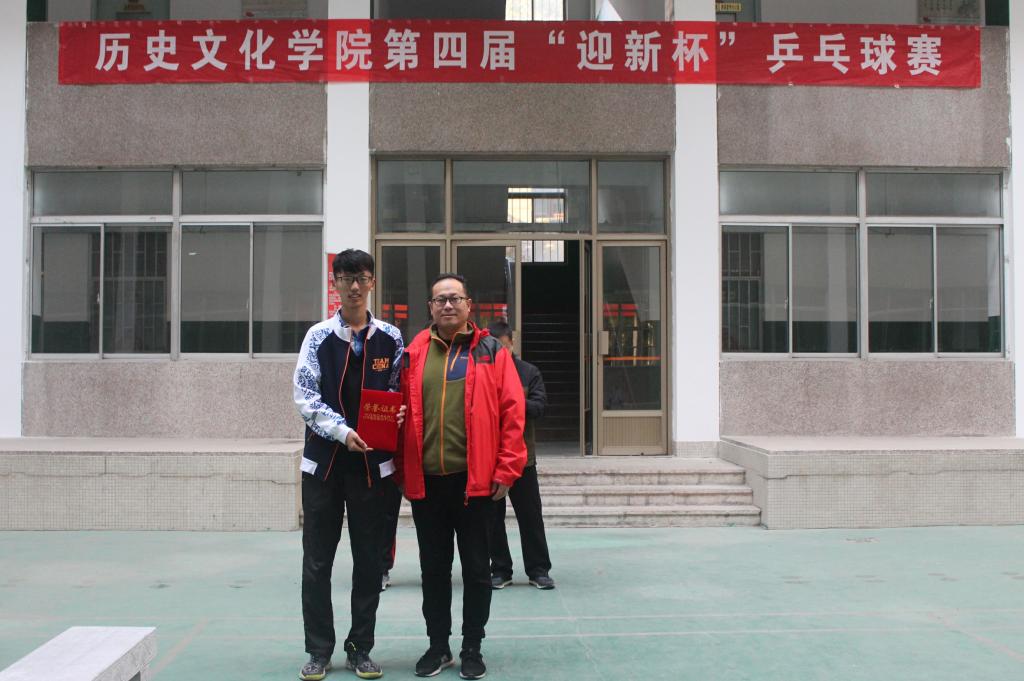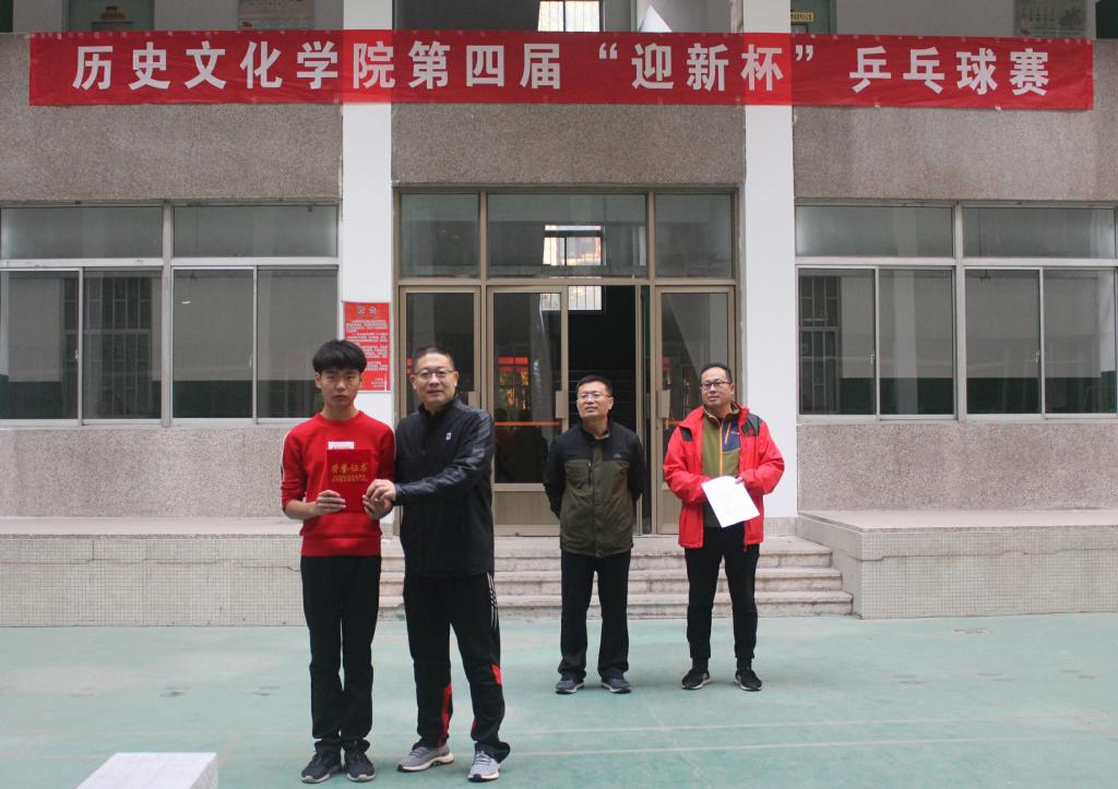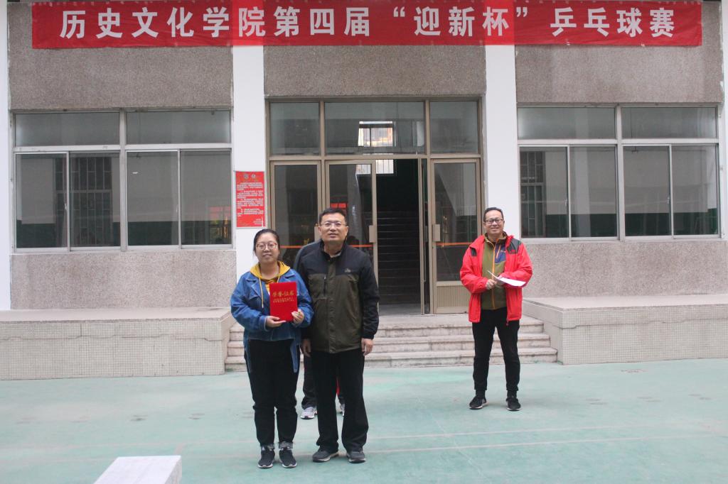 11月3日,由大乐透 团委主办的第四届“迎新杯”乒乓球赛闭幕式在文史楼天井成功举行,大乐透 王慕东、韩锋老师,教育学院王连生老师出席闭幕式。