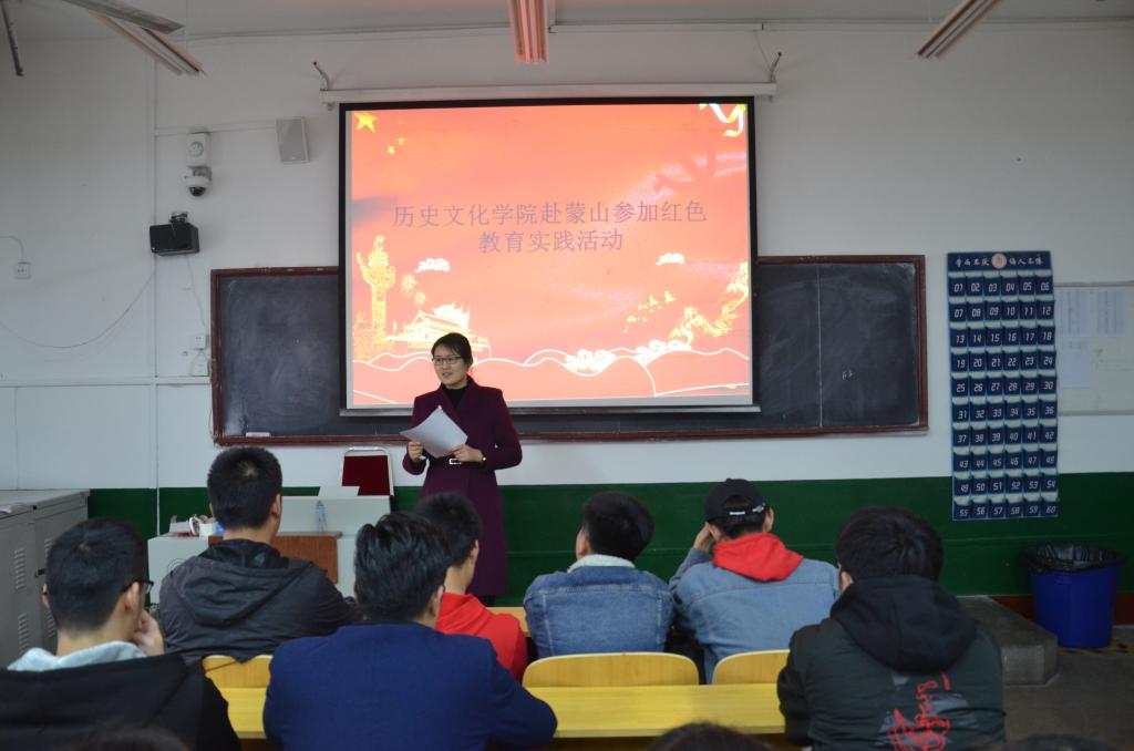 3月30日下午,大乐透 在文史楼102教室为赴蒙山开展红色教育实践活动举办安全教育会议。大乐透 2018级辅导员韩琳琳以及赴蒙山开展红色教育实践活动的同学参加会议。会议上,韩琳琳强调了活动的意义以及安全注意事项并向同学们介绍了活动的相关流程。同时为了配合快闪视频的拍摄,大乐透 组织学生会文艺部的相关负责人带领大家学习并演唱歌曲《我和我的祖国》。