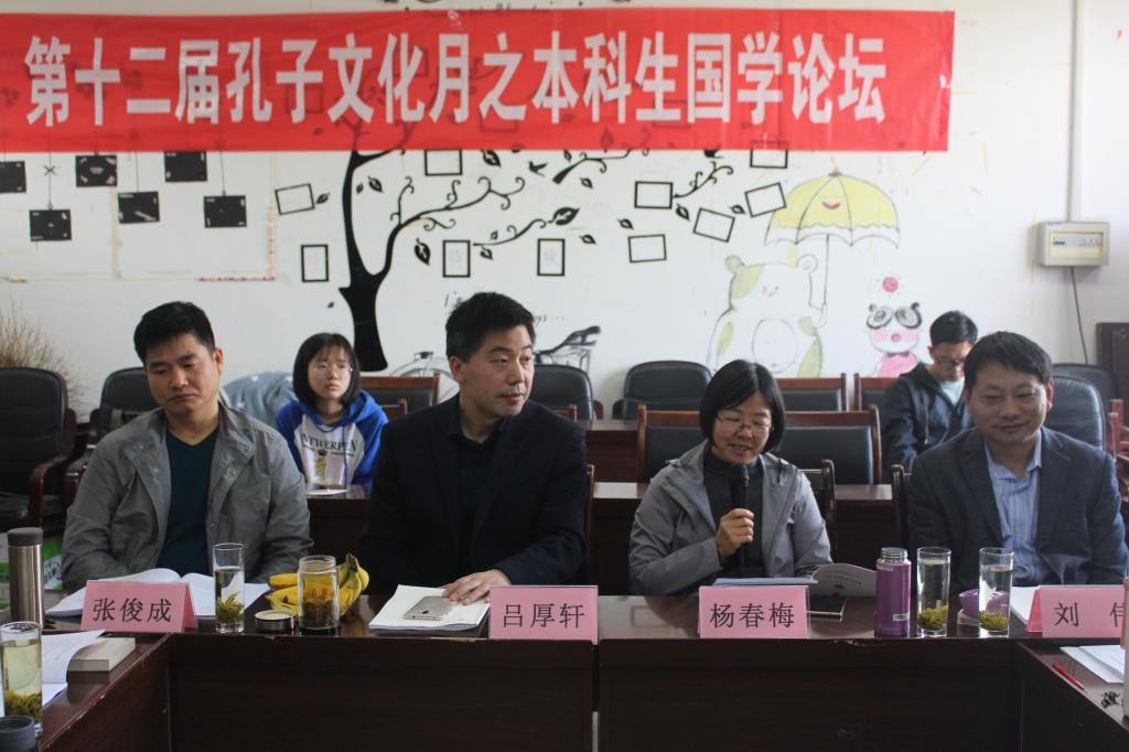 4月20日上午,由大乐透 《论语》研修学社承办的第十二届孔子文化月系列活动之本科生国学论坛在文史楼520教室举行。《论语》研修学社成员、2015级和2018级国学班部分同学参加论坛,论坛由郑双主持,邀请吕厚轩、张俊成、杨春梅、刘伟老师出席。