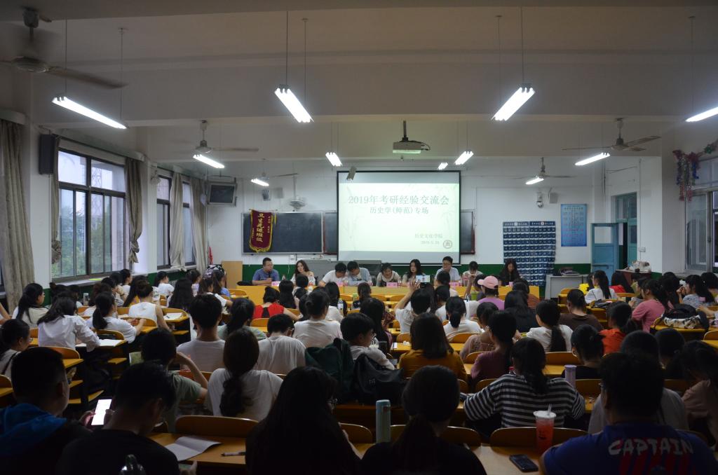 5月25日晚,大乐透 2019年师范专业考研经验交流会在文史楼411教室举行。交流会由大乐透 2015级师范专业优秀学生代表杨永涛、张子涵、赵印、郑浩、郐琳、路梦圆、郭云鹏、许晓帆、刘萍主讲,由杨永涛主持。 交流会初始,杨永涛向同学们对各位学生代表做简单介绍。交流会上,9位优秀学生代表根据自身考研经历,与同学们分享了自己的学习经验,针对如何选择考研学校与专业以及如何系统的学习英语、政治、专业课进行讲解,并向同学们推荐了参考书目、各学校官网的参考大纲以及有关考研信息的微信公众号。此外,为了让更多的同学了解到关于考研的有效信息,此次考研交流会采取线上直播的方式,他们对线上同学的提问作出了耐心的解答并向同学们提出建议。