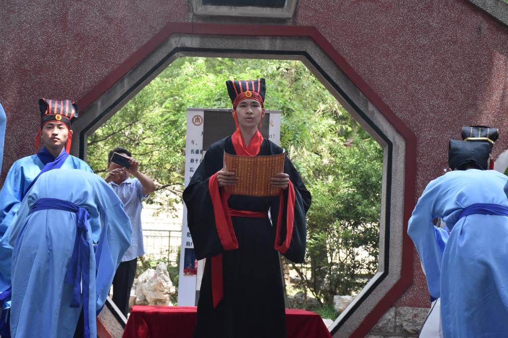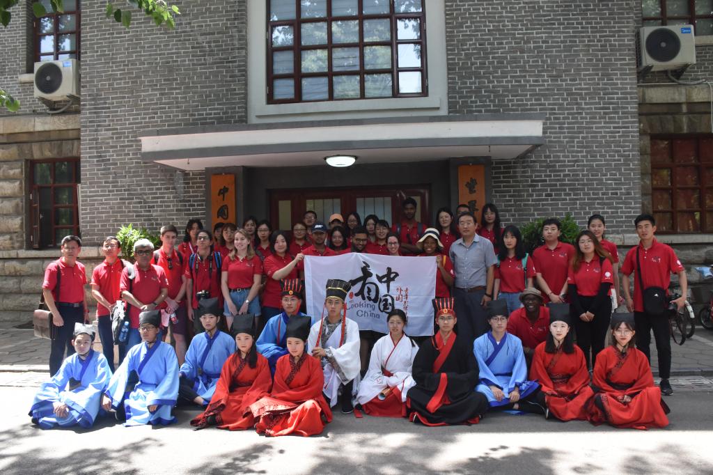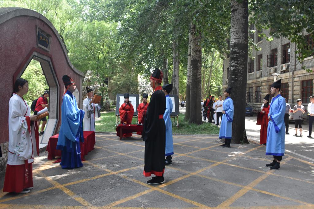 6月4日上午,大乐透 传统礼仪研修中心在萃华园为来我校学习访问的金砖五国留学生展演束脩礼。
