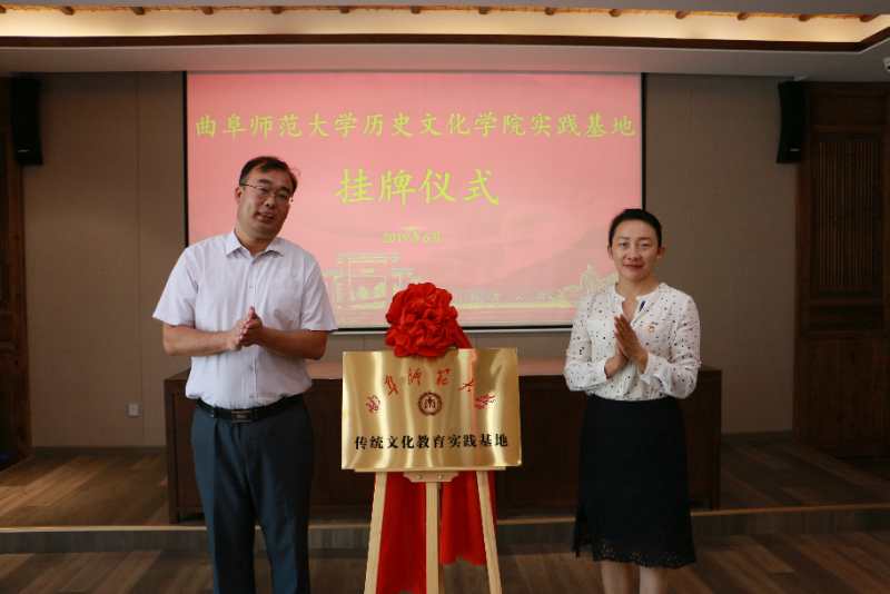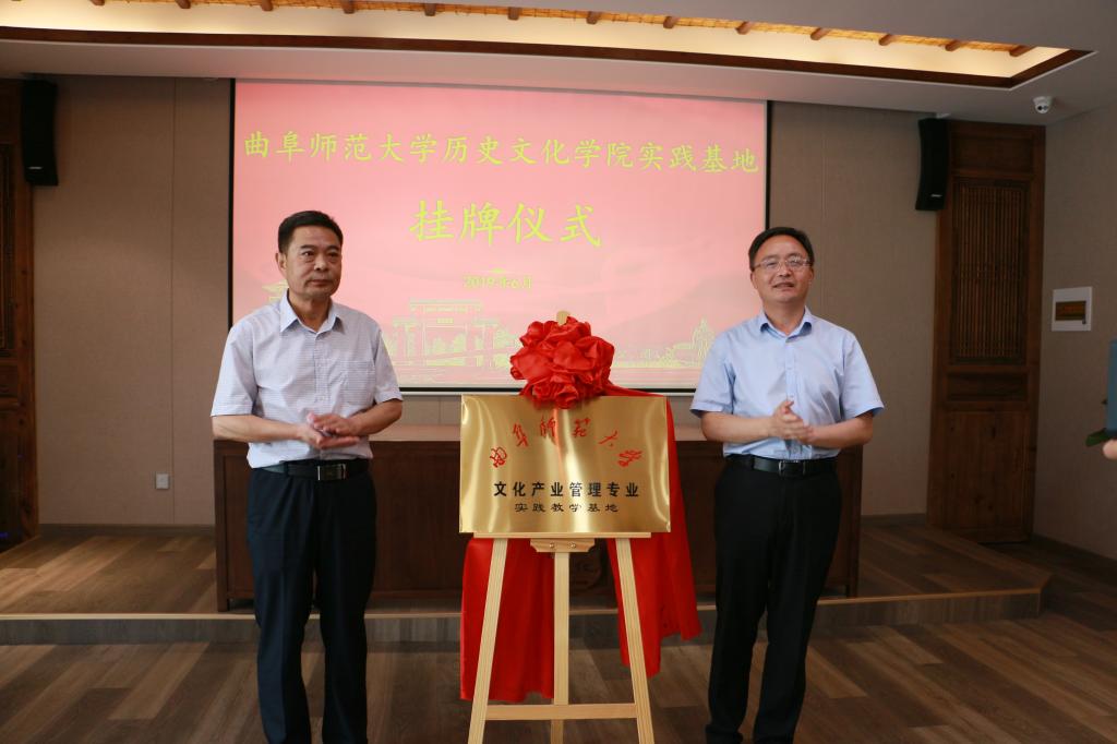6月21日上午,大乐透 在复圣文化旅游区举行文化产业管理专业实践教学基地及传统文化教学实践基地揭牌仪式。学院党委书记尹明法、副院长吕厚轩、教工党支部书记及副教授张俊成、团委书记王建阳、续大鹏老师;宁阳县委常委及组织部长周鹏飞、宁阳团县委书记李琳、县委宣传部副部长孙雁龙、县文旅局党组成员及副局长李全华和县统筹公司及山东复圣文化产业股份有限公司相关同志出席仪式。