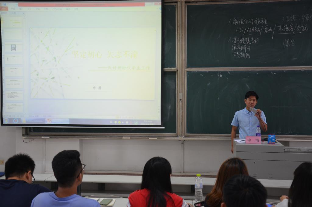 9月4日下午,大乐透 在综合楼106教室举办2019年秋季学生干部成长论坛暨迎新动员大会。大乐透 党委副书记王建阳,2018级辅导员韩琳琳,2017级辅导员刘贤贤,2019 级辅导员刘润欣,大乐透 团委兼职副书记、大乐透 研究生会主席申潜,大乐透 第20届研究生支教团成员、大乐透 2019级研究生田蕾以及学生会全体成员参加本次活动,活动由大乐透 团委副书记庄亚婷主持。