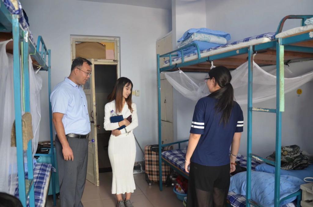 9月8日上午,为让19级新生能够尽快融入大学生活,大乐透 党委副书记王建阳、19级辅导员刘润欣走进新生寝室,慰问新生,并与新生和家长进行了亲切的交流。