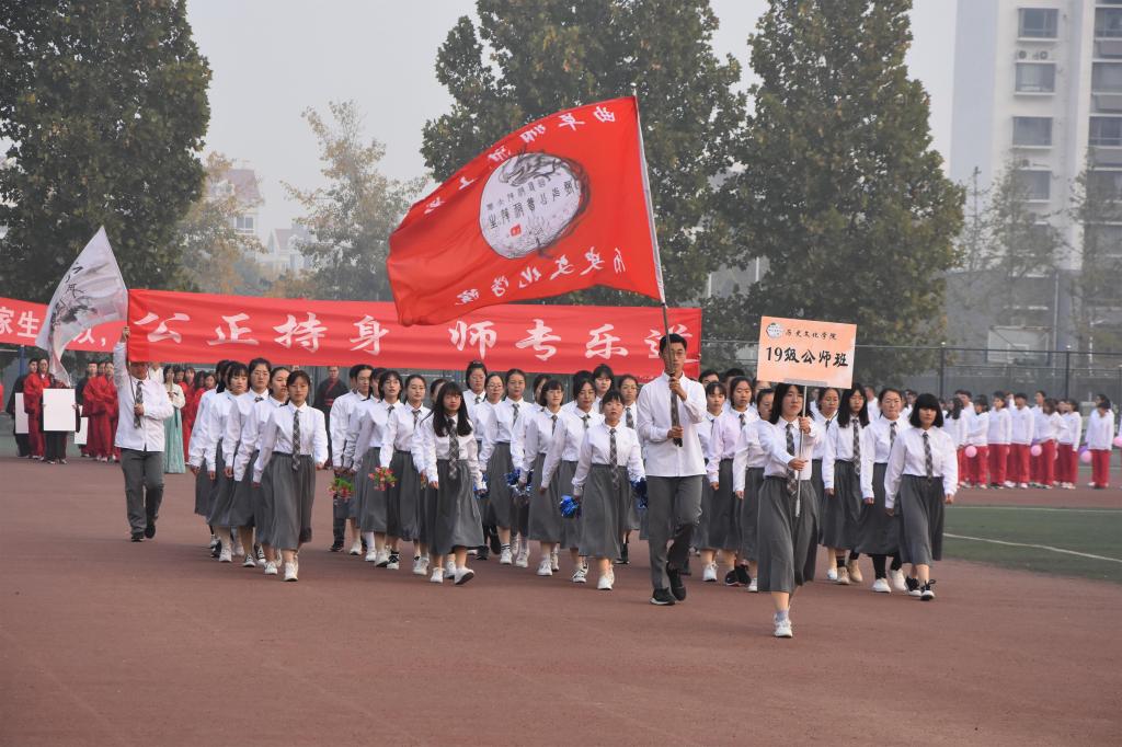 开幕式上,各班方队依次入场,以富有特色的表演展现了各班积极向上的精神面貌。王建阳致开幕词,向参加此次运动会的运动员、裁判员以及同学们表示感谢,并预祝此次运动会圆满成功。2018级李家乐、2017级张加龙分别代表运动员、裁判员进行宣誓。最后,2019级公费师范生班带来的活力十足的啦啦操表演将现场气氛推向高潮。