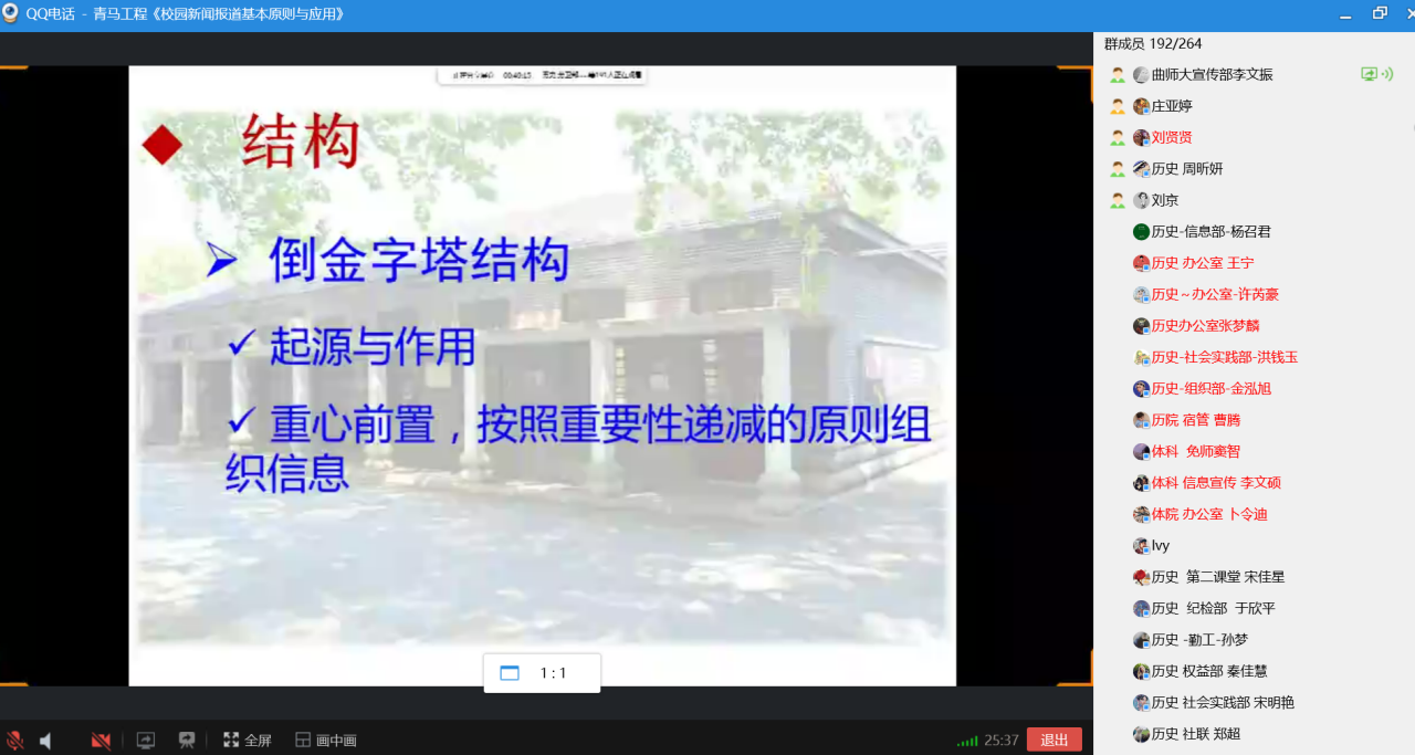 网络培训会议的开展,促进了同学们新闻写作能力的提升和摄影技巧的提高,提高了学生干部的综合素质及工作能力,为接下来学生工作的顺利开展打下了良好的基础。