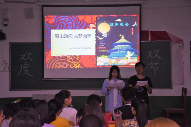 在欢快轻松的氛围中,各个班级的同学表演了丰富多彩的才艺,畅谈人生经历,表达了对美好大学生活的憧憬。老师们走进每一个班级,与新生一起表演节目,欢度国庆,乐享中秋,并为新生送去美好的节日祝愿。最后,国庆中秋晚会在大家的阵阵欢笑中圆满结束。
