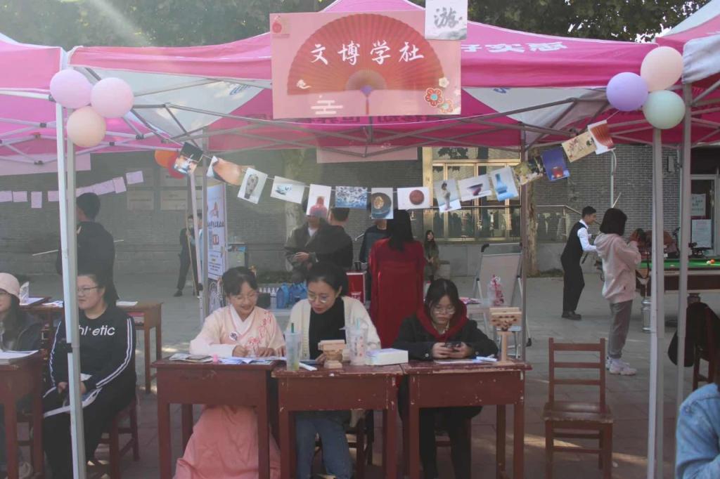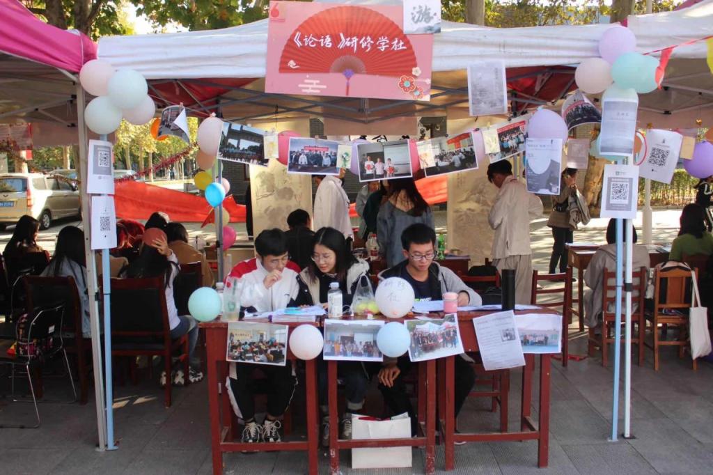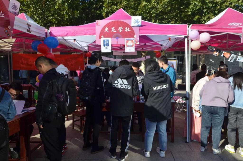 10月24日,我校在大学生活动中心前广场举办“学至六五,集至百团”百家社团迎校庆主题活动。学院洙泗学社、《论语》研修学社、史苑学社、文博学社、拾光文化创意社、辩论社、羽毛球协会积极参加,各展风采。