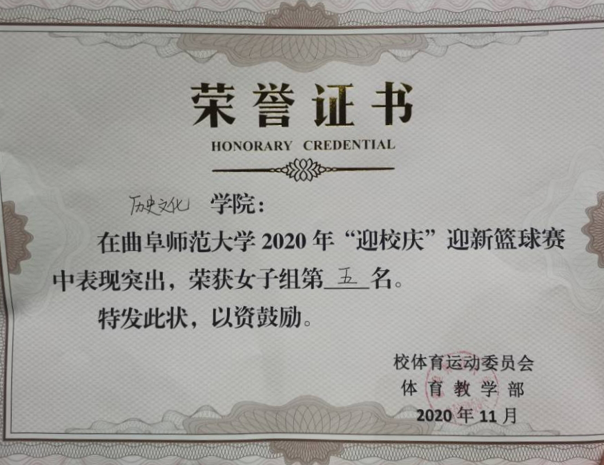 10月23日至11月4日,大乐透 女篮参加“迎校庆”迎新篮球赛,最终取得第五名的优异成绩。