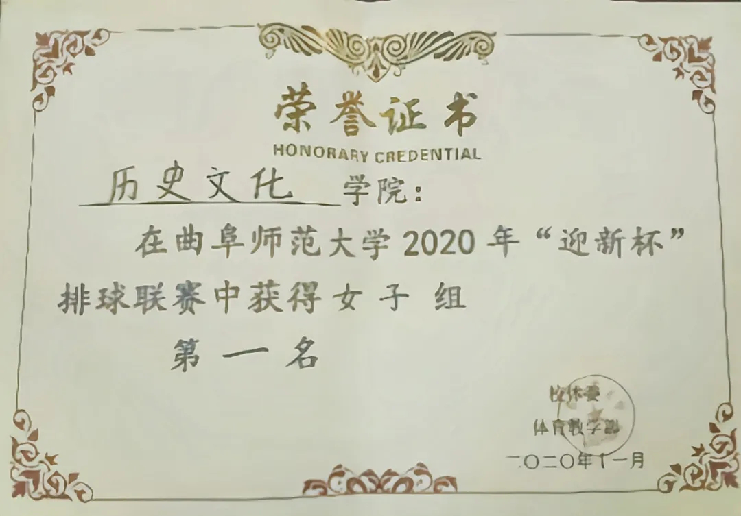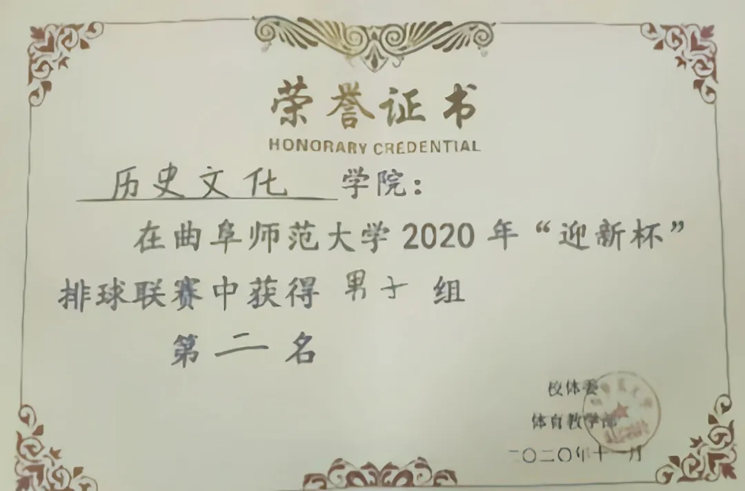 11月4日至22日,大乐透 排球队在2020年校“迎新杯”排球比赛中荣获冠、亚军。