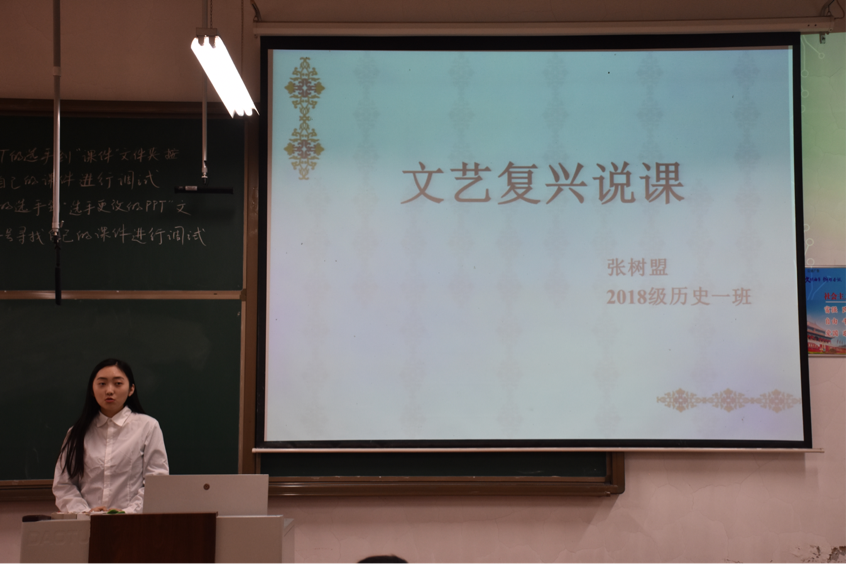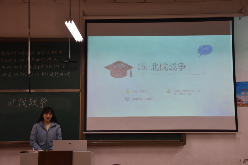大赛初赛评比方式为说课,各参赛选手都做了精心准备,通过准确的语言表述,将各自的教学步骤、教学特点条理清晰地展示出来。选手们以初高中历史知识为着眼点,借助手写板书、多媒体等辅助工具,详细明了地讲述了自己的讲课内容,教学内容各具特色,在短短五分钟内,充分介绍了他们的教学内容和教学特点。初赛后,评委就选手在比赛中出现的优缺点作出点评,指出课程授课过程需进行整体精细构思和合理设计,层次清晰、重点内容突出等。