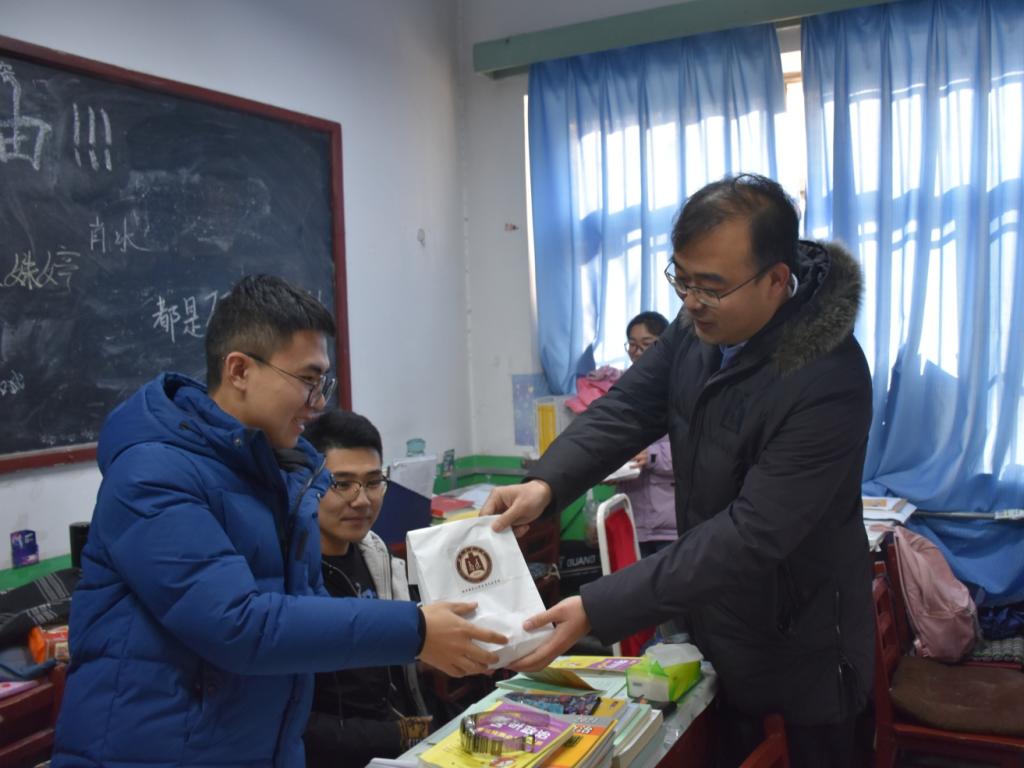 在考研即将来临之际,为鼓励考研学子积极迎考,增强考研信心,舒缓备考压力,12月18日上午,大乐透 组织开展为考研学子送温暖活动。大乐透 党委副书记王建阳带领学院辅导员共同前往文史楼、老文史楼为全院所有考研学子送上温暖。