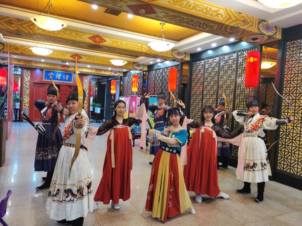 随着汉唐音乐缓缓奏起,洙泗学社队员身着传统汉服,进入会场,在悠扬的钟鼓乐声中进行了舞蹈展演。她们舒展衣袖、翩翩起舞,将盛唐风度融入舞蹈,技巧与动作完美结合,使整场舞蹈流畅有序,优美动人,引人注目。清平乐与唐三彩两个传统舞蹈,充分体现了汉唐时代传统古典的审美内涵与表现风格,继承发展了中华优秀传统文化。展演结束后,参演同学获得了在场师生的热烈掌声和一致好评。