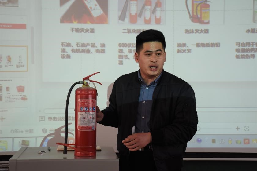 闫浩主要从宿舍安全、消防器材的使用、科学的自救方法、学生干部的应急能力的和良好行为习惯的养成等方面进行了细致的讲解。闫浩要求各班班委要发挥学生干部的服务作用,带头提高安全意识,掌握科学的自救方法,及时有效的组织同学们逃生自救。
