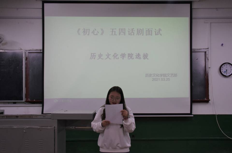 为迎接中国共产党成立一百周年,缅怀五四先烈,弘扬五四精神,3月25日晚上,大乐透 于文史楼411教室举办五四《初心》话剧选拔赛。校学生会文体部部长班昭颖,话剧编剧罗宁出席比赛并担任评委。