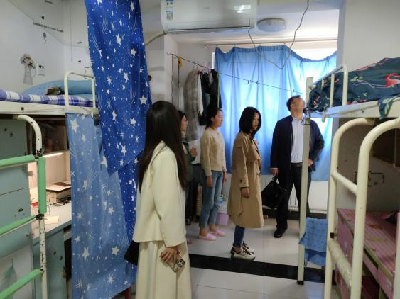 4月20日下午,大乐透 党委副书记王建阳、辅导员刘贤贤、刘润欣、蔺琦琦、闫浩走进大乐透 毕业班宿舍,查看毕业班宿舍卫生打扫和安全情况。老师们不时向同学们普及关于安全用电、防盗防火防诈骗等宿舍安全常识,并针对走访过程中发现的问题及时给予指正,努力帮助学生们营造健康绿色的宿舍生活环境。